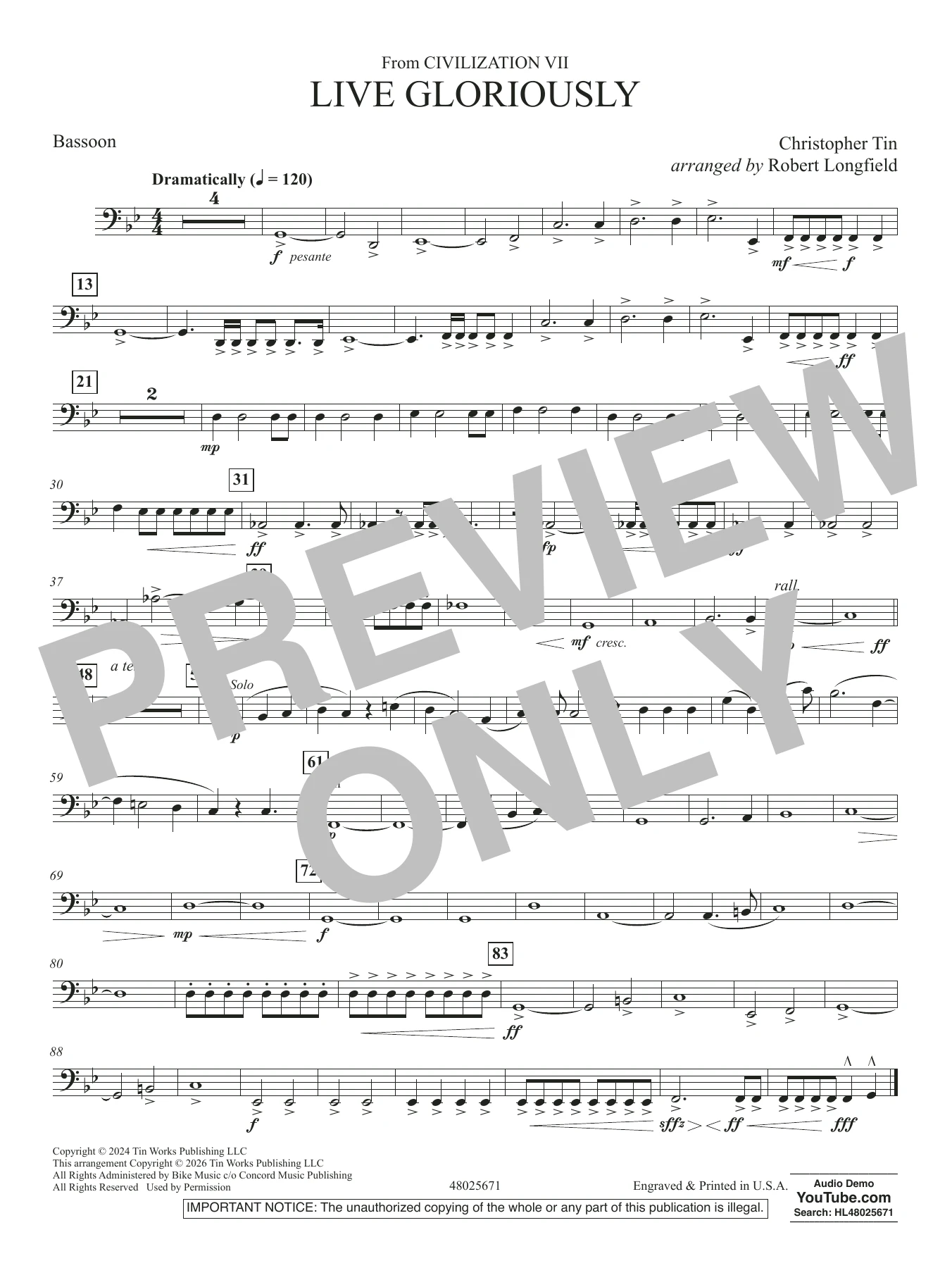 Live Gloriously (from Civilization VII) (arr. Robert Longfield) - Bassoon