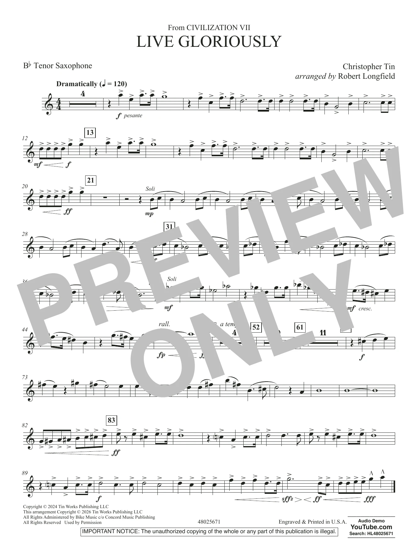 Live Gloriously (from Civilization VII) (arr. Robert Longfield) - Bb Tenor Saxophone
