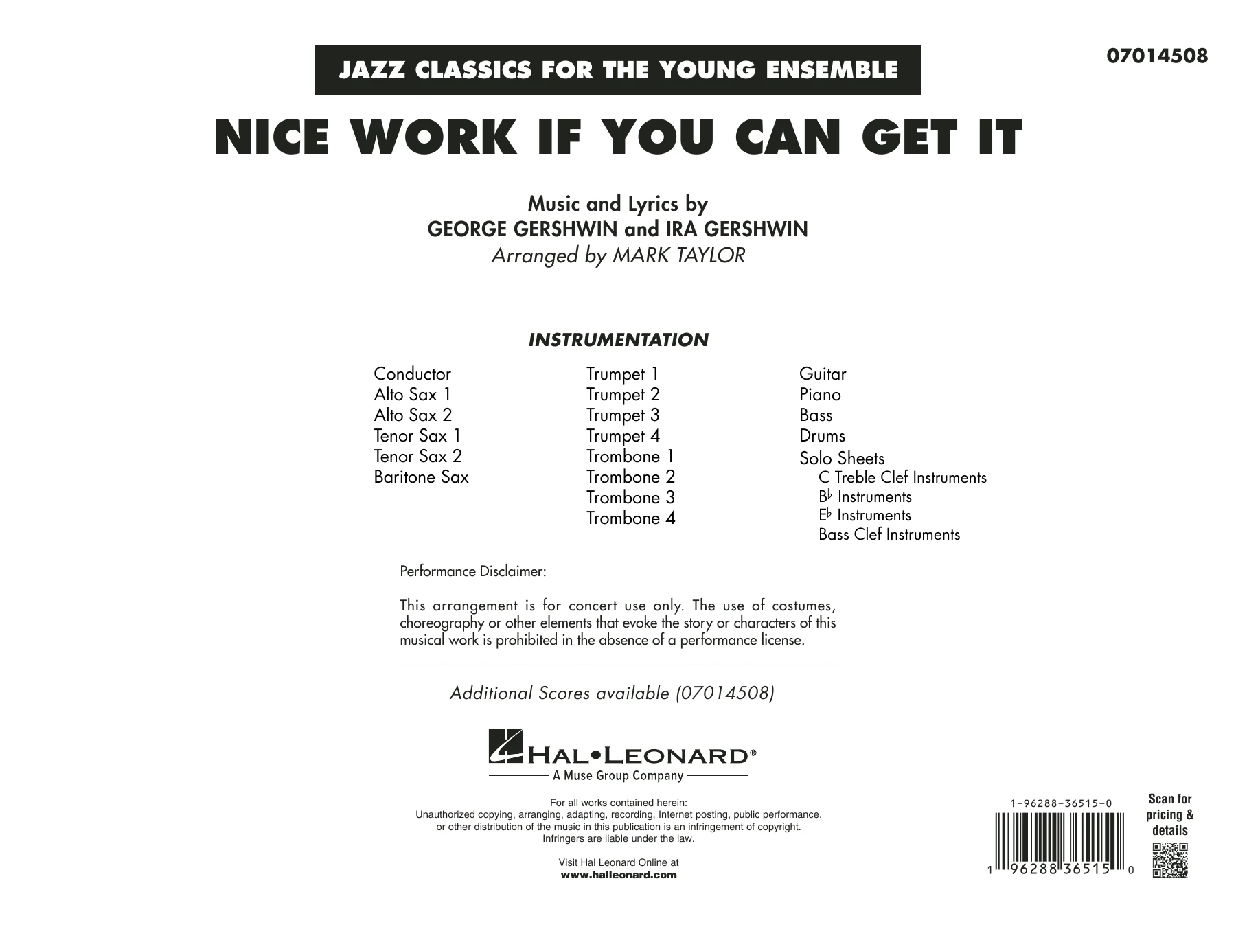 Nice Work If You Can Get It (arr. Mark Taylor) - Conductor Score (Full Score)