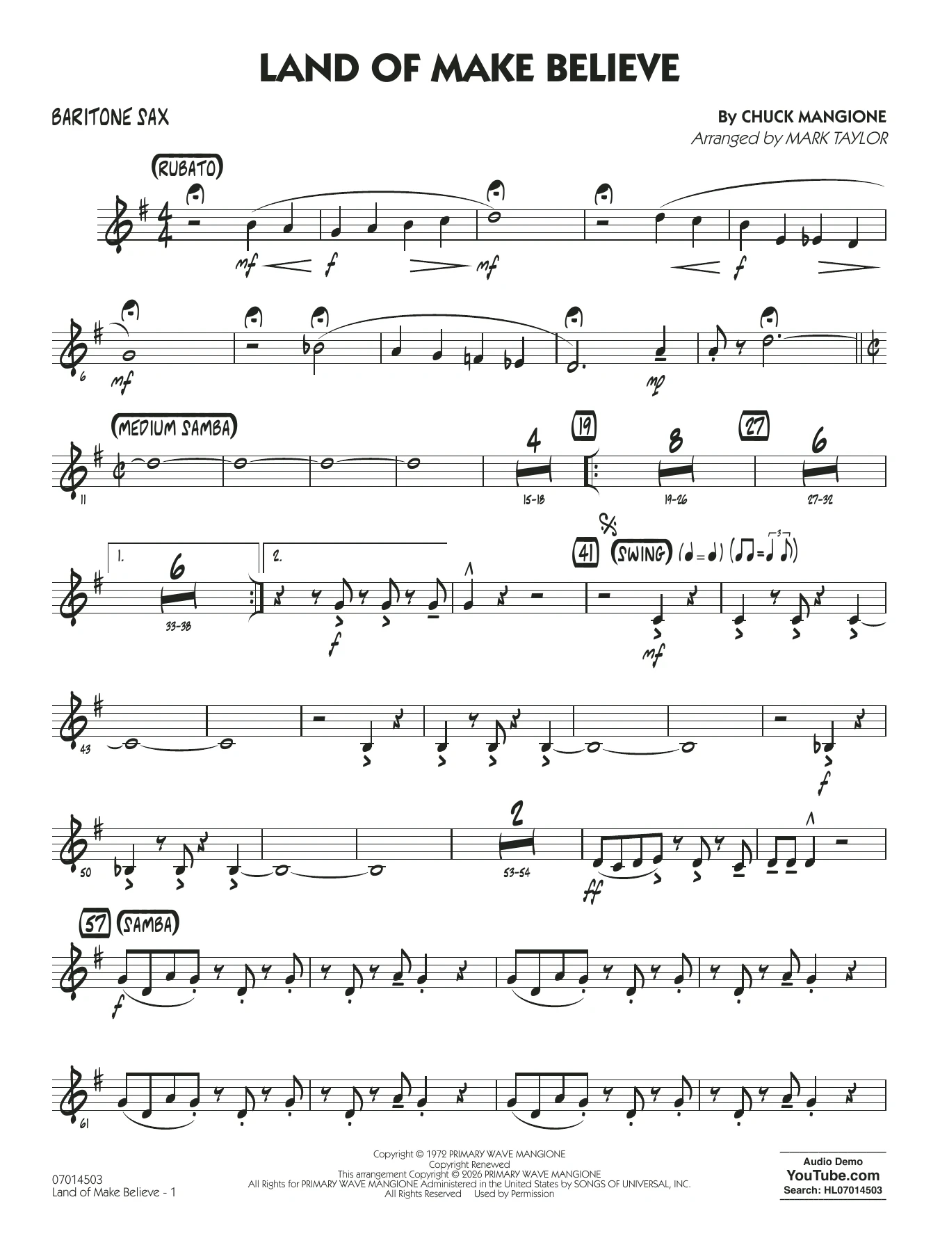 Land of Make Believe (arr. Mark Taylor) - Baritone Sax
