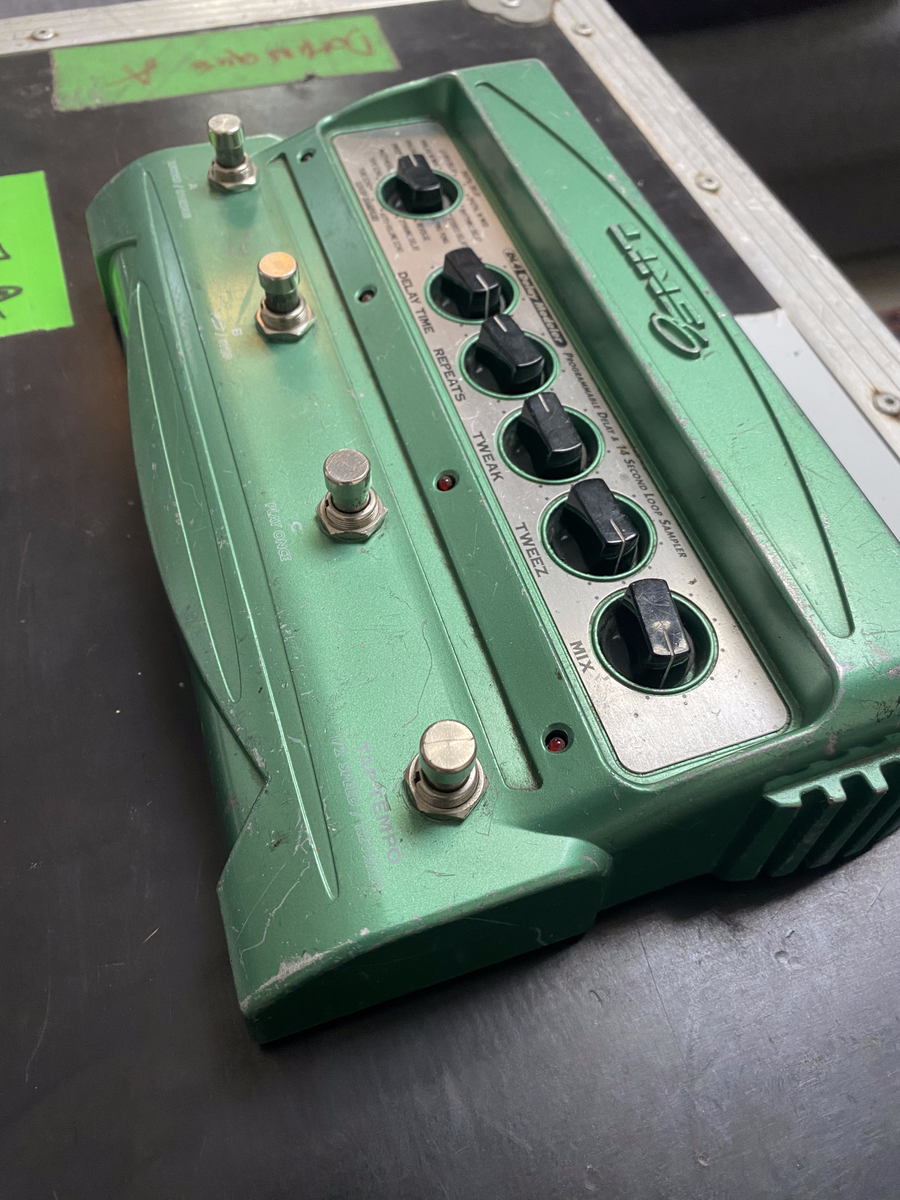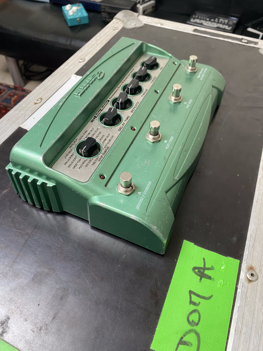 Anécdota de Dominique A: Durante mucho tiempo, este pedal compitió en mi corazón con mi querido Headrush en lo que se refiere a la función de loop, especialmente porque algunos programas de reverb son muy bienvenidos. Principalmente utilicé este pedal para samplear coros en vivo, especialmente durante la gira en solitario de 2004, donde pasaba mucho tiempo "tejiendo" con los bucles (se puede obtener una muestra en un DVD grabado en Les Bouffes du Nord en esa época, fácilmente disponible en la red). A riesgo de dar munición a mis detractores, en ese entonces tocaba casi más con los pies que con las manos.