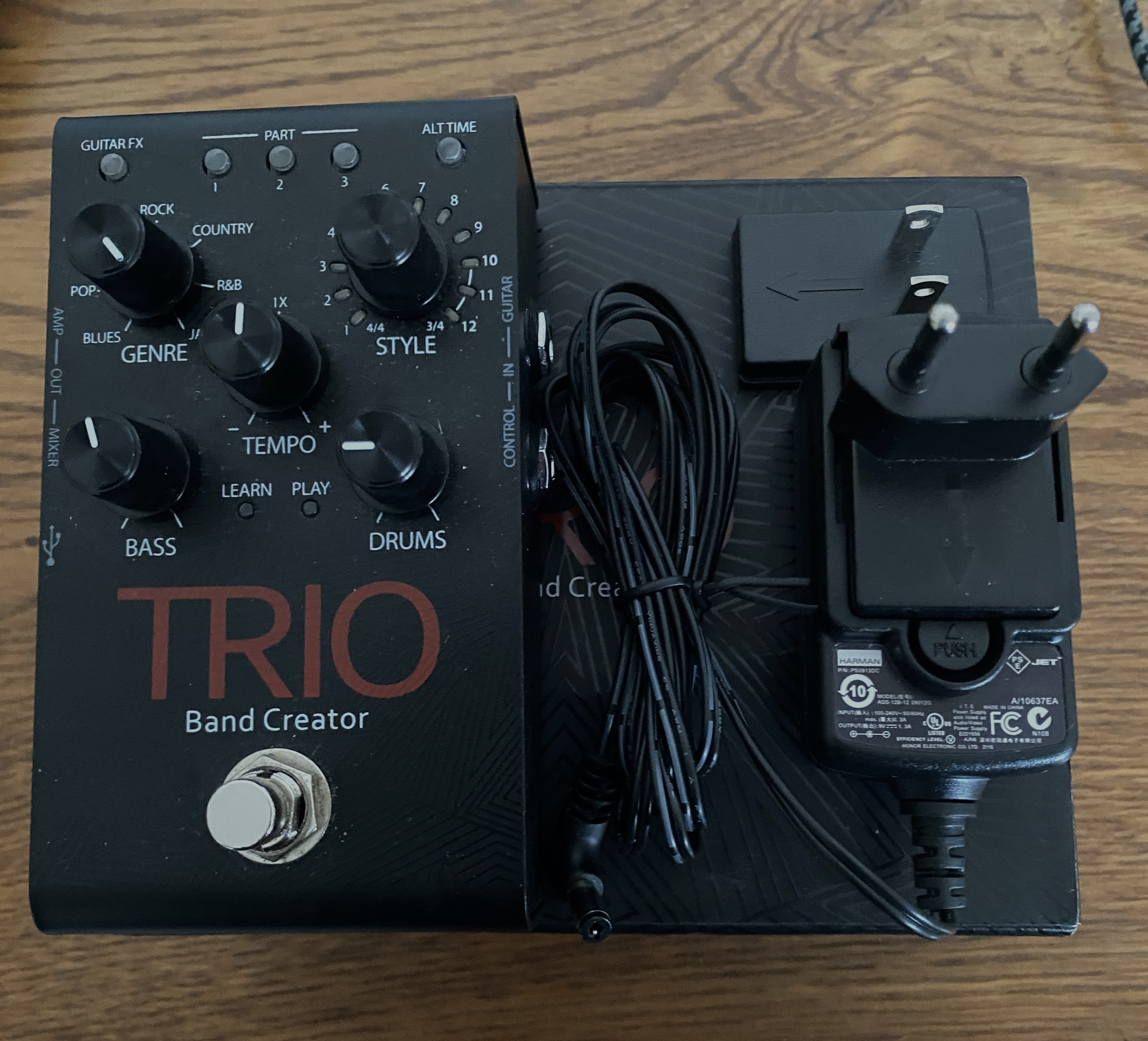 Vende pedal que genera automáticamente partes de bajo y batería que se adaptan a tu estilo de guitarra. ¡Así tienes tu propia banda acompañándote bajo tus pies! - 7 géneros de tempo, 12 estilos - Ajuste de volumen para batería y bajo - Ajuste de tempo Viene con el adaptador de corriente de 9v. Compatible con Boss - MXR - Electo harmonix - TC Electronic - Mooer - Fender - Marshall - Ibanez - Harley Benton.