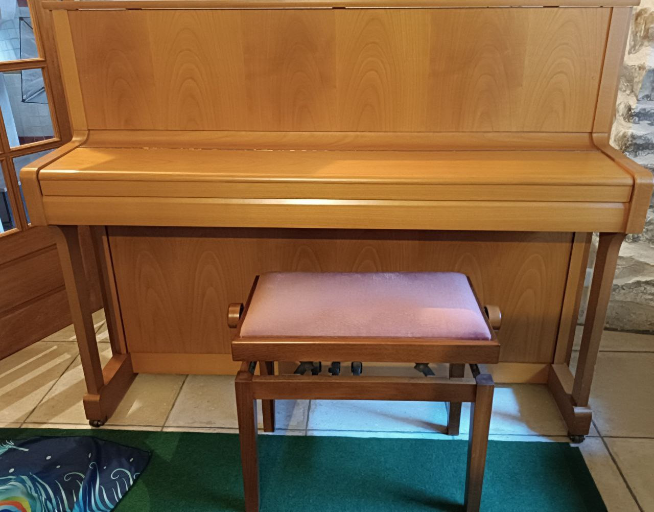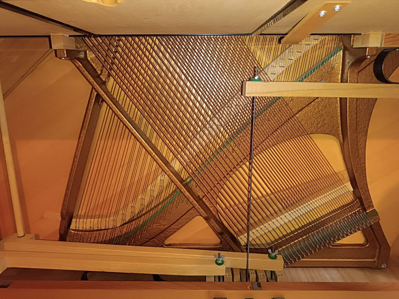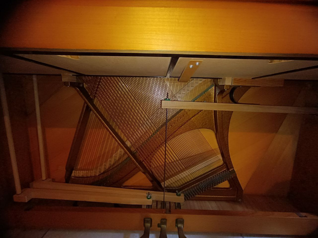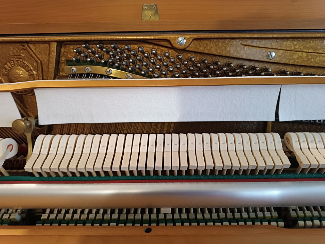 Vendo Piano HOFFMANN Trend 120 en acabado caoba, fabricado "Made by BECHSTEIN" bajo el número 144489\nAño de compra: 12 de noviembre de 2001\nEste piano de primera mano ha sido afinado regularmente.\nLa tabla armónica, el encordado, los martillos de fieltro y el conjunto mecánico de los pedales se encuentran en perfecto estado.