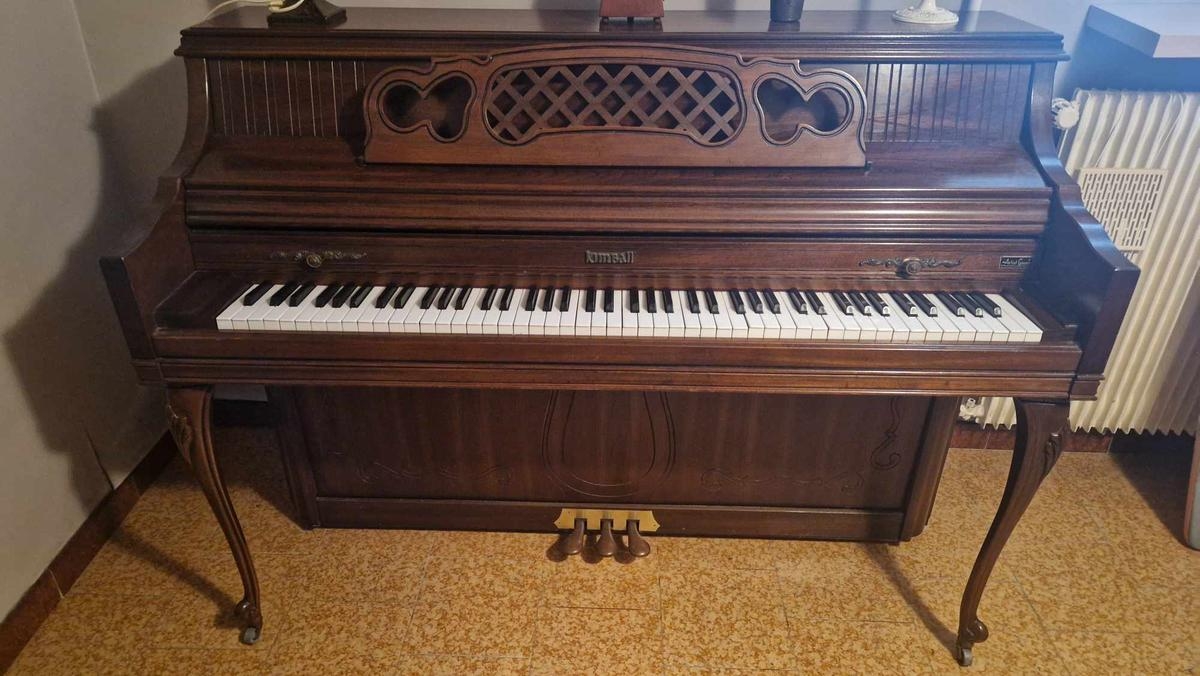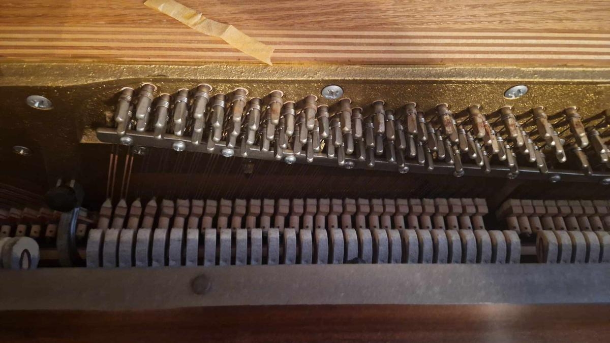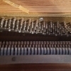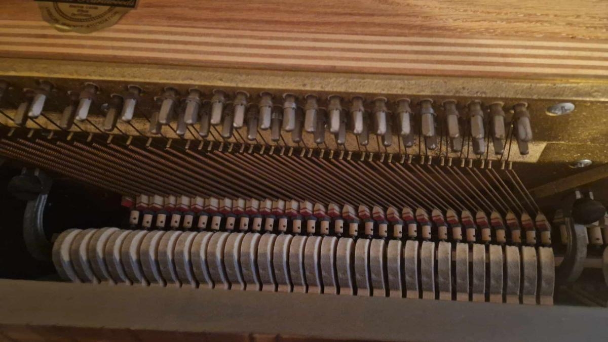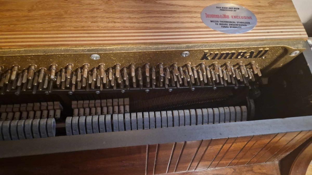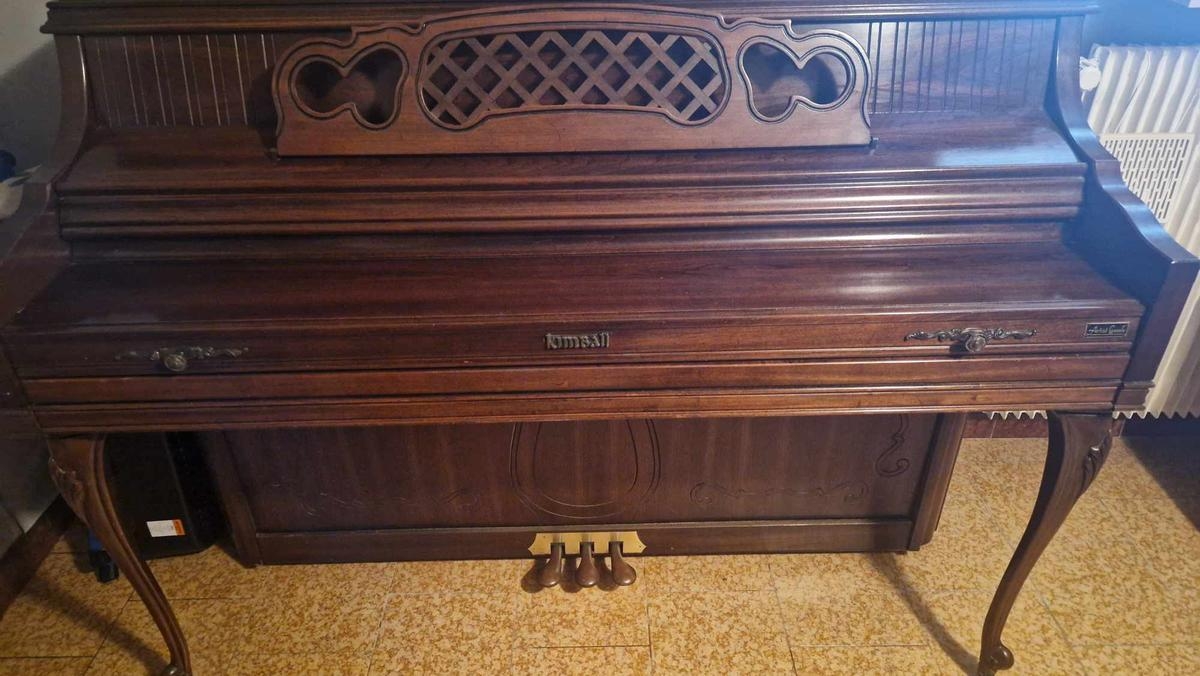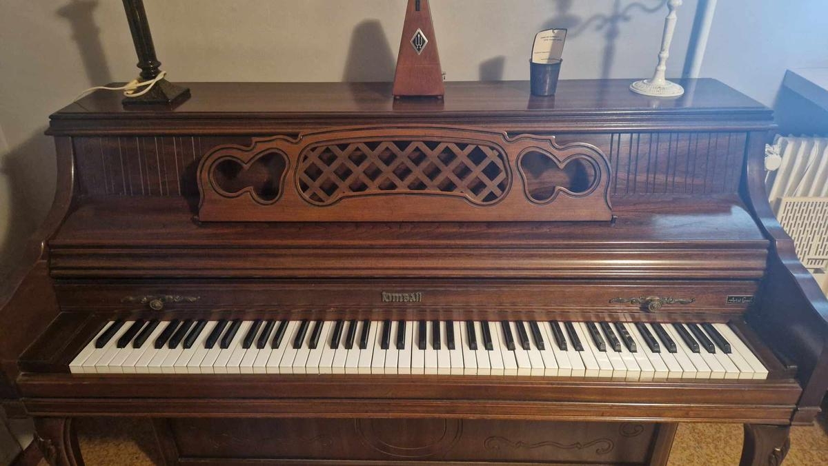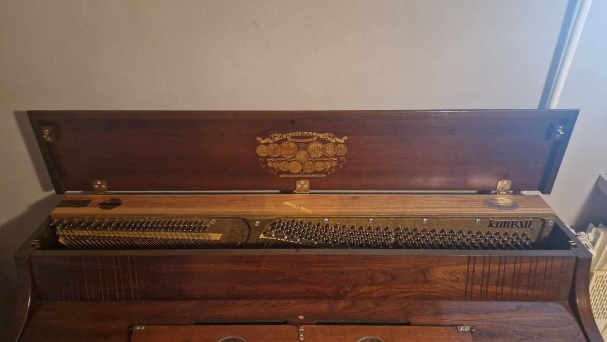 Este piano vertical de la marca Kimball, fabricado en Estados Unidos, es un instrumento de diseño clásico refinado. Se destaca por sus delicadas esculturas, sus bordes curvados y su acabado de caoba lustrada. Kimball, conocido por su solidez y la calidad de sus mecanismos, fue durante mucho tiempo uno de los fabricantes más populares en América del Norte.