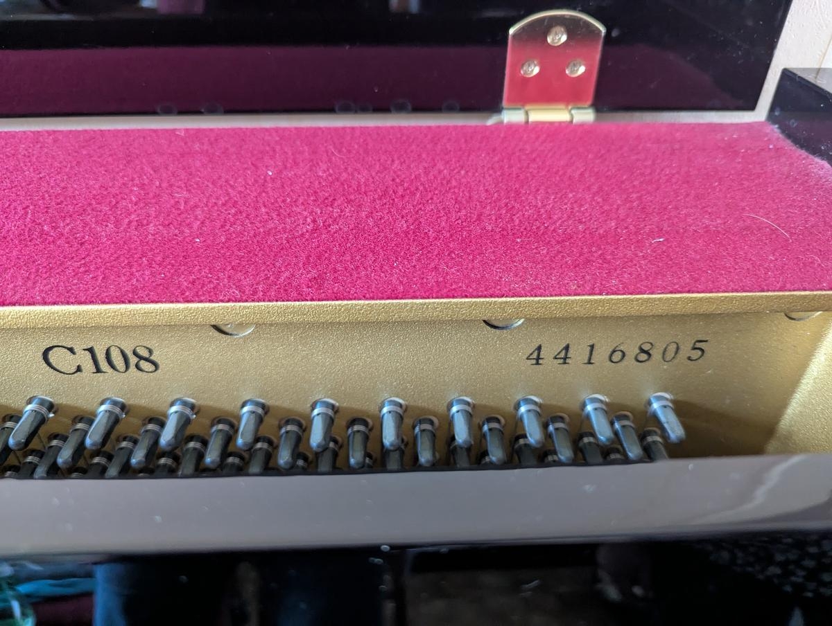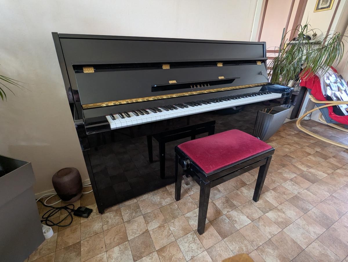 Piano vertical Yamaha negro, modelo C108, en excelente estado.