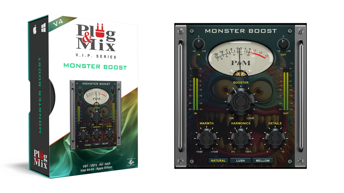 Desata armónicos audaces y un tono rico y cálido con Monster Boost, un plugin amplificador de señal diseñado para agregar pegada y brillo a cualquier pista. Con controles de Booster, Warmth, Harmonics y Details, Monster Boost es perfecto para realzar baterías, voces y mezclas completas, dándoles un sonido pulido e impactante.