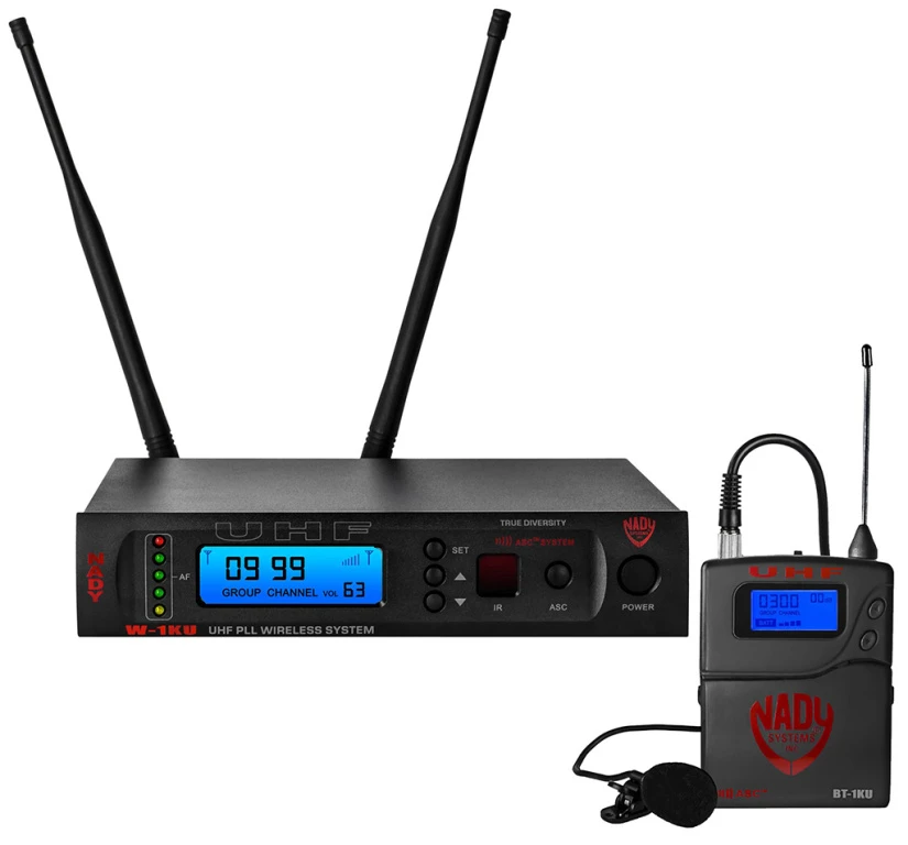 Sistema inalámbrico profesional UHF de micrófono de solapa/lavalier de 1000 canales Nady W-1KU LT True Diversity