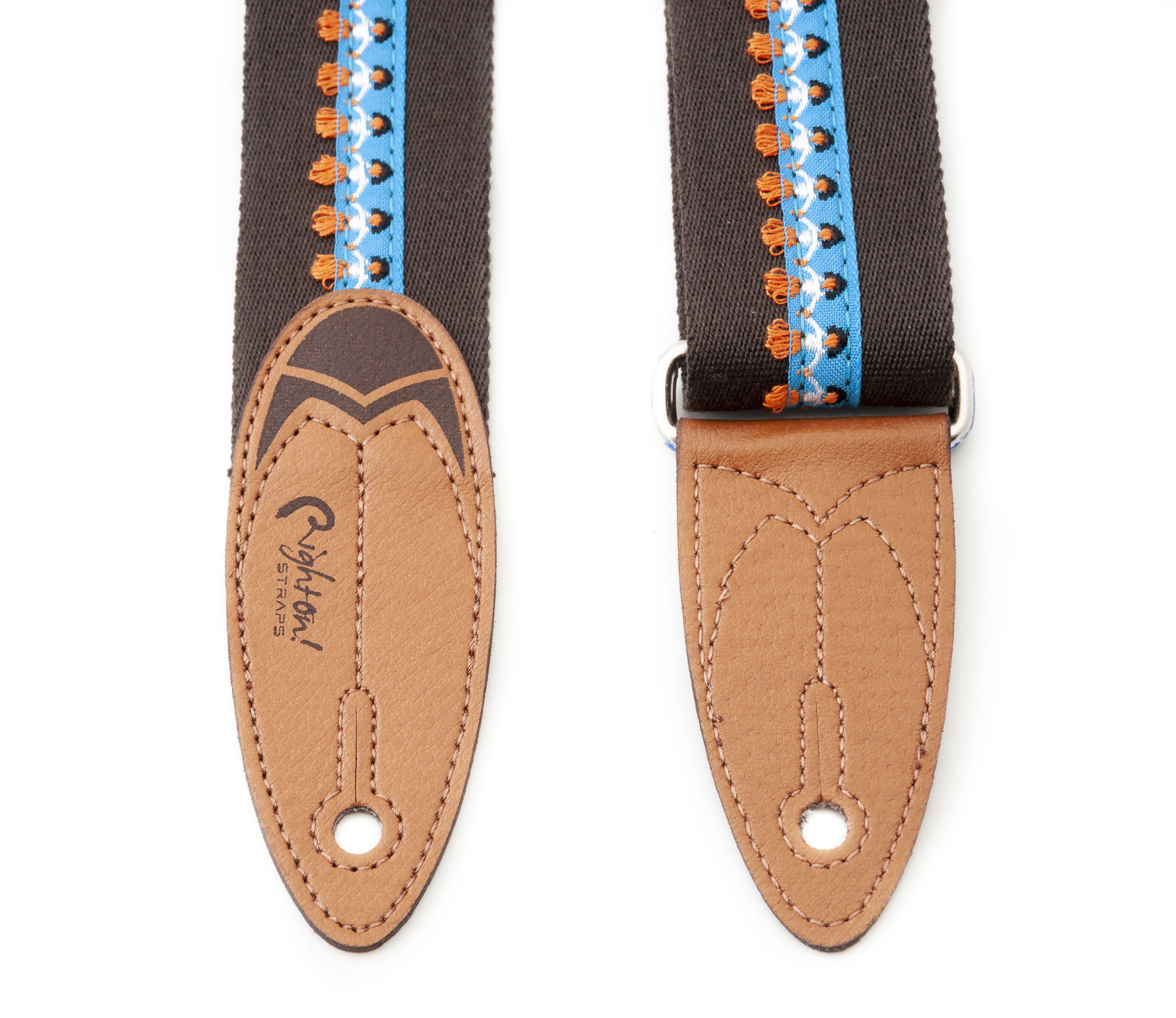 Este modelo presenta un exterior de tela, con extremos sintéticos para un acabado adecuado. Su ancho de 4 cm ofrece una buena sujeción, mientras que su longitud ajustable de 85 a 153 cm permite adaptarla según las necesidades. Su tono marrón le da un aspecto discreto y versátil.