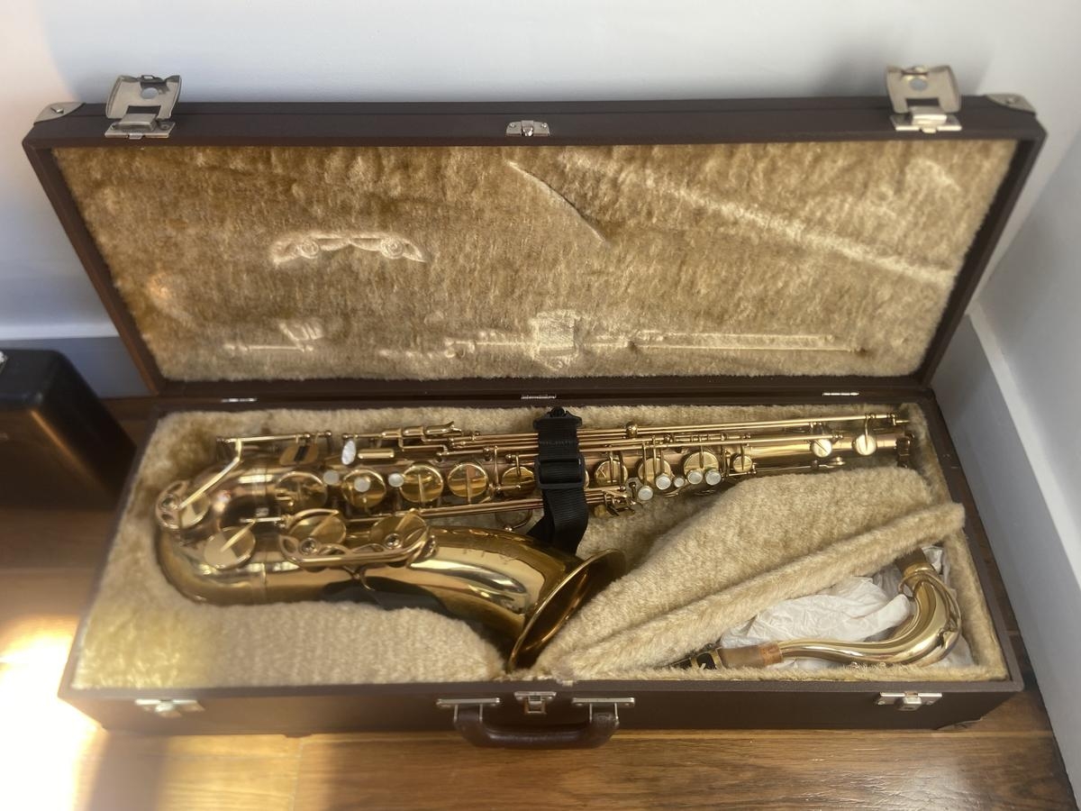 Instrumento bien cuidado, siempre almacenado en buenas condiciones. Requiere una ligera revisión. Ideal para un músico experimentado o un coleccionista en busca de un tenor vintage de alta calidad.