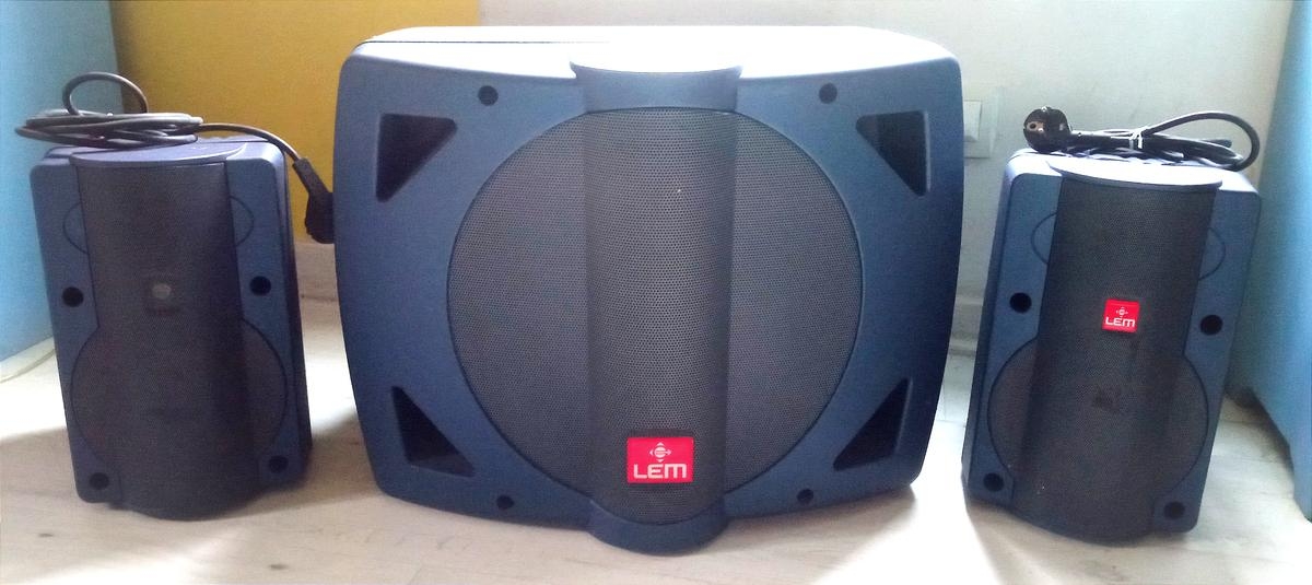 Sono WEM completa con micrófono con cable y estación inalámbrica. Buen estado de funcionamiento.