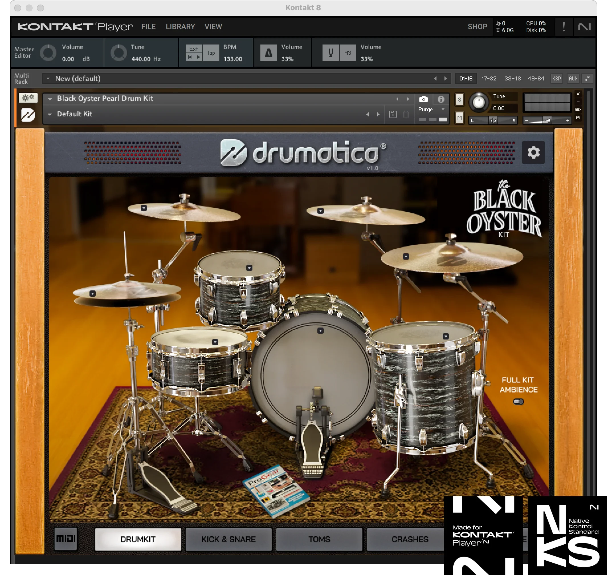 El Kit Black Oyster de Drumatica es un nuevo instrumento de batería KONTAKT mezclado por Darrell Thorp, ingeniero de mucho tiempo de los Foo Fighters y ganador de 10 premios Grammy (Foo Fighters, Beck, Twenty One Pilots, White Stripes), que ofrece una enorme biblioteca de sonidos de batería listos para la radio con controles intuitivos de mezcla, reverberaciones personalizadas, EQs y efectos, y una biblioteca de ritmos MIDI integrada con más de 500 ritmos y variaciones de rock clásico, hard rock y nu metal interpretados por un verdadero baterista de sesión de Los Angeles.