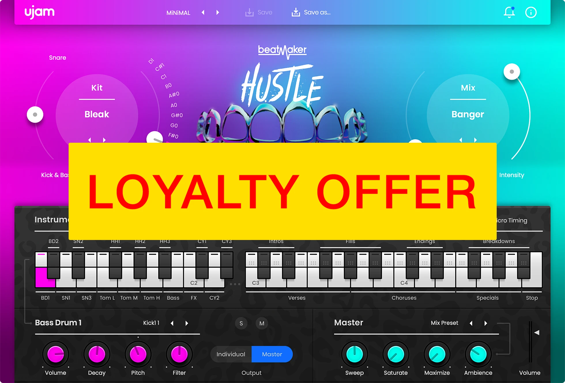 HUSTLE ofrece tambores auténticos de género para trap, grime, Dirty South y estilos de club pesados en bajo. Potentes 808s, hi-hats agresivos y todo lo que necesitas para una producción moderna de bajos.