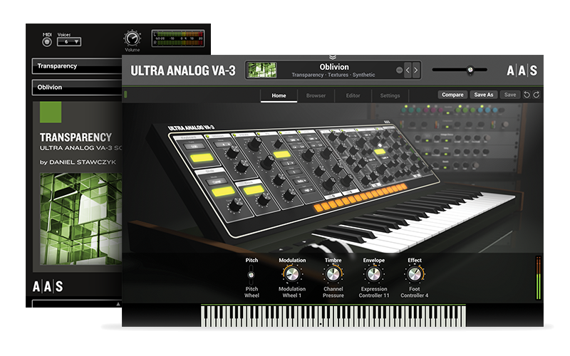 Esta colección de presets increíblemente inspirada se puede usar con el plug-in gratuito AAS Player, así como con el sintetizador analógico Ultra Analog VA-2.