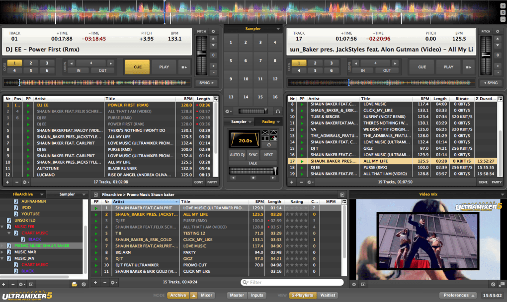 Capacidades multitarea: sincroniza y mezcla automáticamente tu música entre 4 reproductores al tiempo que agregas puntos de cue y efectos, preescuchas canciones o cargas títulos en tus listas de reproducción. Incluso puedes integrar a tu audiencia con la ayuda de una cámara en vivo o hacer anuncios mostrando "texto en vivo" en una pantalla plana o una videopared.