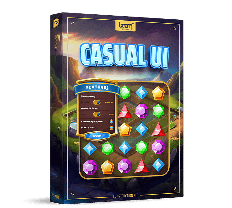 Alejándose de los tonos de arcade convencionales y de los efectos demasiado caricaturescos, CASUAL UI se enfoca en un conjunto moderno de tonos que deslumbran, brillan y centellean. Los sonidos de corta y mediana duración de esta biblioteca son una mezcla de tonos y magia que mantienen una sensación accesible y realista. Cada sonido, desde pequeños chapoteos hasta clics etéreos, mejorará la retroalimentación y la diversión de cualquier mundo interactivo.