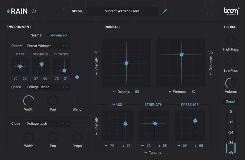 Experimenta con parámetros de intensidad y densidad de lluvia extremadamente versátiles, que van desde una gota ocasional hasta intensas lluvias en selvas tropicales, suaves goteos en humedales vibrantes y todo lo que haya en medio.