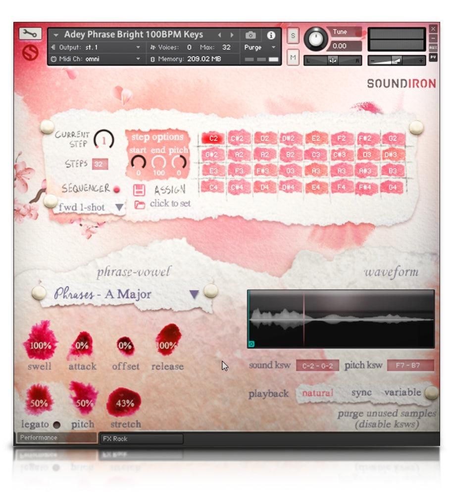 Grabamos a Adey en un estudio seco, utilizando un micrófono de estudio Neumann de gran diafragma y alto rango dinámico, junto con previos Sound Devices para obtener el máximo detalle, claridad, fidelidad y rango dinámico limpio. Esta librería es compatible con NKS, por lo que puedes usarla en Kontakt 6 Player y Komplete Kontrol, o acceder a las muestras de frases y respiraciones en formato WAV de 24 bits / 48 kHz desbloqueado, cargándolas directamente en cualquier DAW u otro software compatible con WAV que desees.