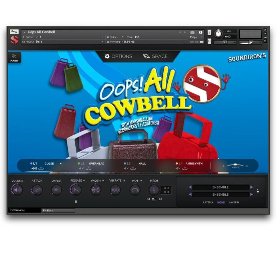 También hemos creado (sin querer) una selección creativa de 32 leads y pads ambientales a partir de la fuente acústica original, ¡una especialidad de Soundiron! Luego lo incorporamos a nuestra intuitiva interfaz de instrumento de 4 capas para Kontakt (versión completa) y el gratuito Decent Sampler. ¡Incluso tiene presets SFZ de código abierto para los técnicos hardcore (como nosotros)! Podríamos decir que es una broma del Día de los Inocentes, pero de alguna manera realmente hicimos esto, ¡es barato y es realmente increíble! ¡Este es 100% Soundiron fortificado! ¡Compra hoy mismo una caja de Oops! All Cowbell!
