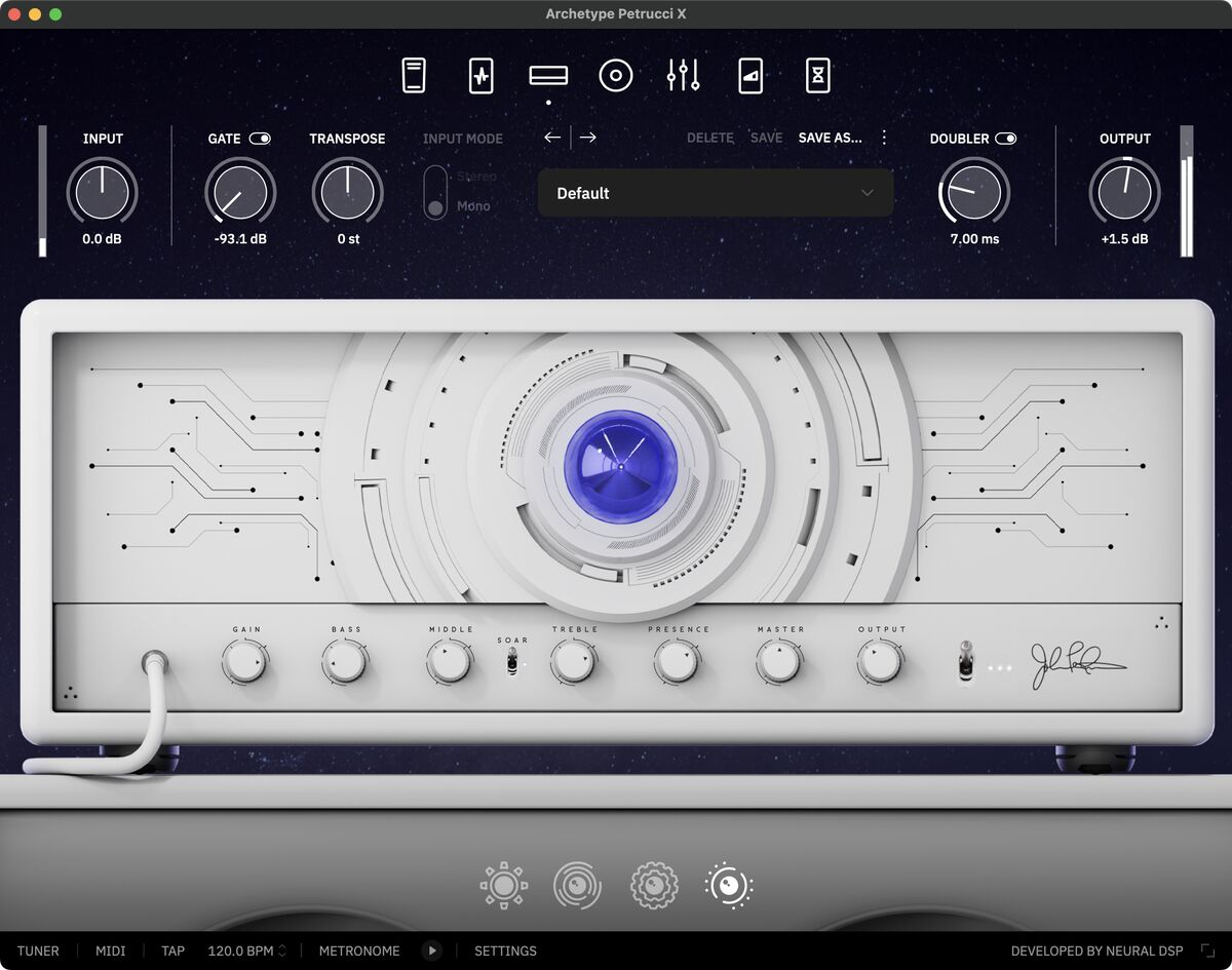 El Neural DSP Archetype: Petrucci es un plugin de modelado de amplificadores y efectos diseñado en colaboración con John Petrucci (Dream Theater). Ofrece una colección completa de sonidos de guitarra de alta precisión, que van desde limpios cristalinos hasta saturaciones potentes y articuladas.