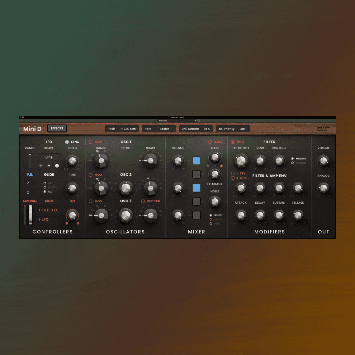 Mini D desbloquea un mundo de sonidos impresionantes basados en uno de los sintetizadores más icónicos jamás creados, pero con características actualizadas que le brindan flexibilidad moderna y nuevas posibilidades. Todo lo que esperas está aquí: sonidos cálidos y contundentes clásicos, presentados con una interfaz deslumbrante y 300 preajustes modernos y retro para añadir nueva clase sonora a tus producciones.