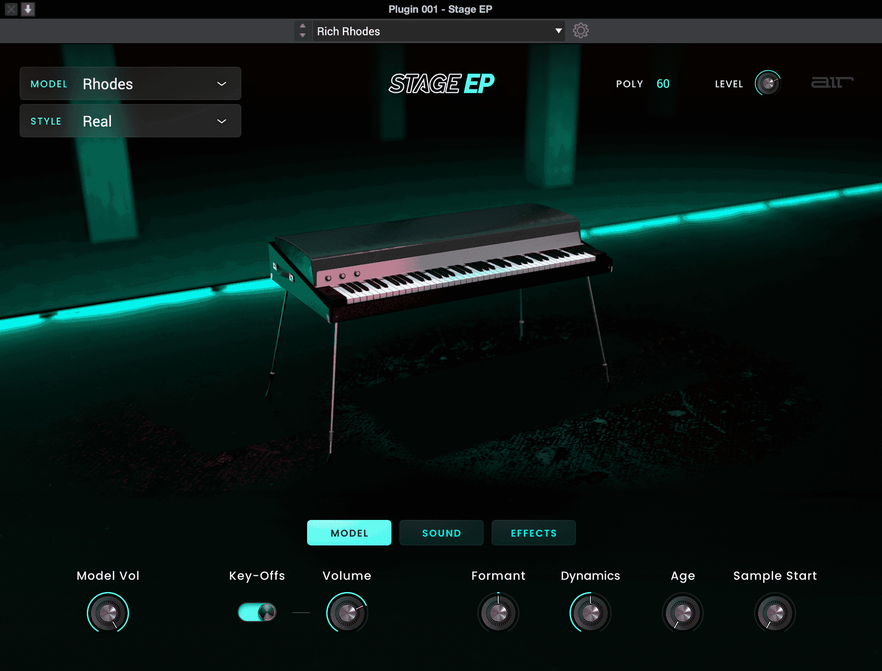 ¡El Stage EP incluye conjuntos de muestras de varias capas recogidos de los impresionantes pianos eléctricos de todo el mundo! El equipo de ingenieros de AIR muestreó con minuciosidad cada modelo de piano eléctrico en Alemania para asegurarse de capturar la belleza natural de las características acústicas del instrumento.