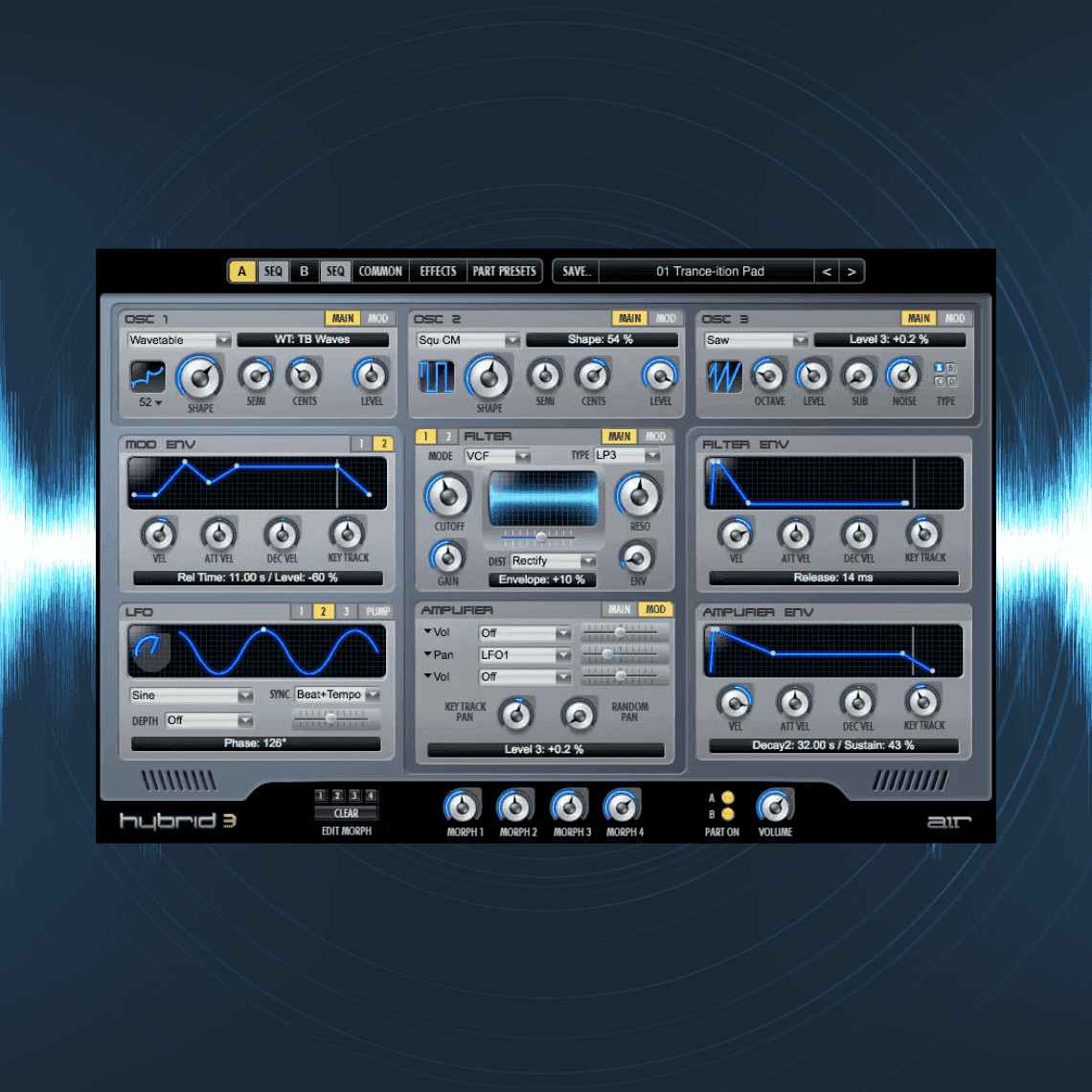 Hybrid 3.0 viene con más de 1.200 presets inspiradores diseñados para iniciar el proceso creativo. Más de 200 nuevos patches, diseñados por los aclamados diseñadores de sonido de AIR, incluyen desde wobbles, pads de sintetizador, arpegios, sintetizadores polifónicos, bajos, leads, secuencias y mucho más. Los veteranos de Hybrid estarán encantados de descubrir que los presets familiares de Hybrid 2.0 han sido completamente renovados, lo que permite a los usuarios experimentar sus sonidos favoritos con todas las mejoras sonoras de Hybrid 3.0. Si te gusta hacer ajustes, Hybrid 3.0 está cargado con un conjunto completo de parámetros ajustables por el usuario que te permiten crear sonidos únicos y afinarlos a tu gusto. Con soporte para dos partes simultáneas (es decir, una poderosa combinación de dos sintetizadores de 3 osciladores separados), puedes superponer, dividir o dispersar sonidos para crear patches profundos, complejos y amplios. Además, el sencillo explorador de patches facilita encontrar el preset que buscas y te permite cargar dos presets simultáneamente, uno en cada parte, para experimentar con ricos timbres y tocar sonidos multipatch.