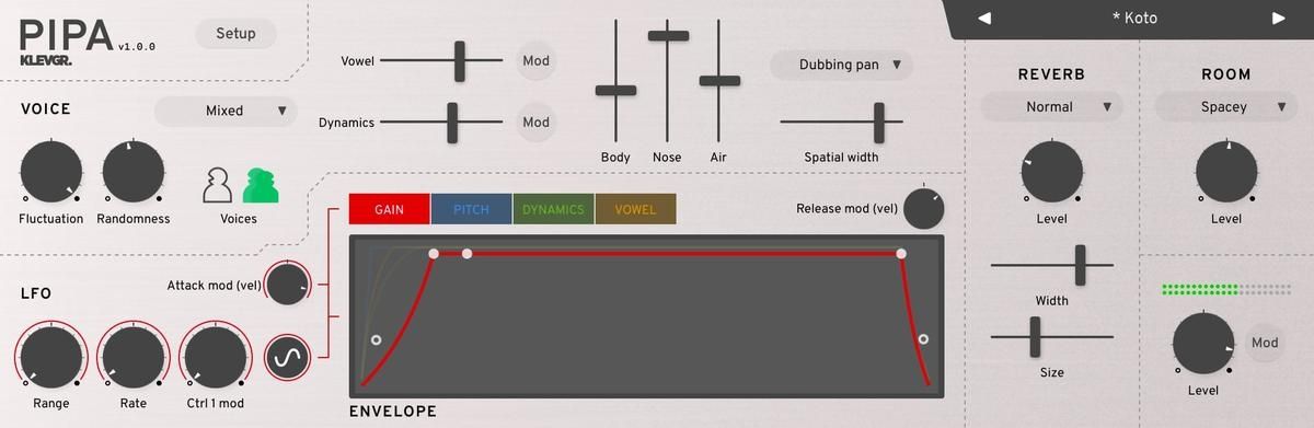 Pipa es un sintetizador vocal de canto con un sonido único y diferente. Está inspirado en la expresión y flexibilidad de la voz humana, pero no pretende cubrir todos los aspectos de una voz real. En cambio, se enfoca en un sonido orgánico y musical donde el usuario tiene la posibilidad de controlar los formantes y la dinámica de manera fluida.