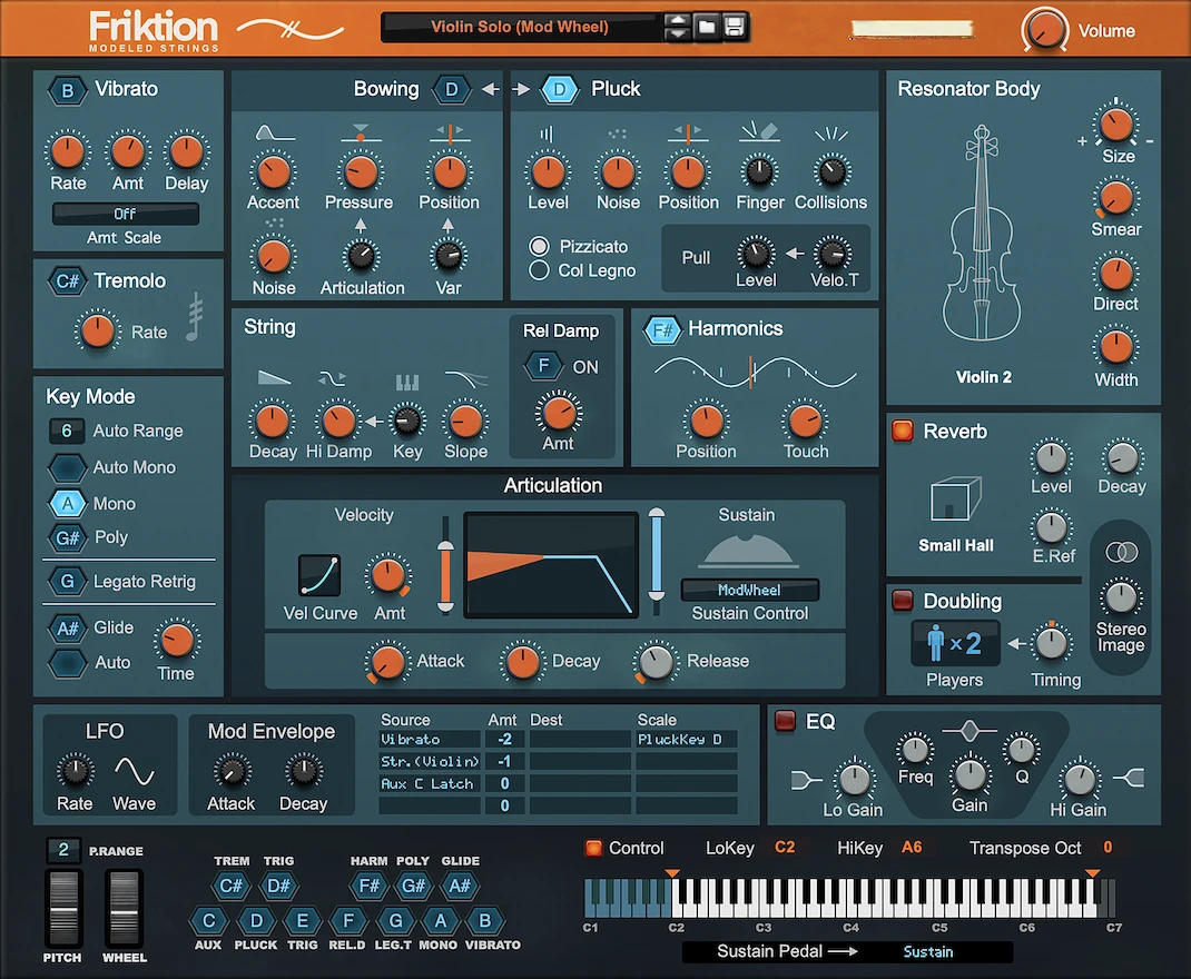 Obtén toda la expresividad y el sonido natural de los instrumentos de cuerda, directamente en tu Reason Rack. Utiliza Friktion para crear partes de cuerda que se asemejan mucho más a las interpretaciones de instrumentos de cuerda en la vida real que cualquier biblioteca de muestras. Friktion es un instrumento de cuerda de modelado físico de Reason Studios. En otras palabras, en lugar de depender de gigabytes de muestras, Friktion es un sintetizador que realmente modela instrumentos de cuerda reales. Con teclas de control inteligentes, puedes tocarlo de una manera que simplemente suene real. Ya sea que elijas un violín o una lira espacial imaginaria, depende de ti.