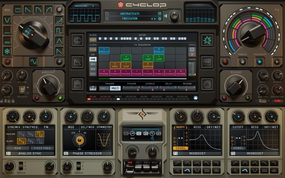 Monofónico, crudo e increíblemente versátil. Cyclop está lleno de herramientas para el bajo del futuro y más allá. Perilla de wobble, secuenciador de efectos y un motor de sonido increíblemente versátil te brindarán alegría sin fin.