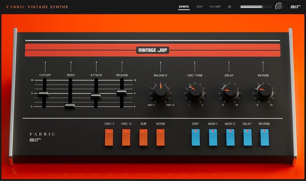 Fabric Vintage Jup de AIR Music Tech ofrece el audaz, amplio e inconfundiblemente exuberante carácter de un legendario sintetizador polifónico de los años 80, reinventado para la producción moderna. Conocido por sus almohadillas resplandecientes, arpegios vibrantes y potentes leads de unísono, este instrumento captura la claridad, presencia y riqueza armónica que hicieron del hardware original una referencia sonora de su época, ahora mejorado con una polifonía expandida y un control contemporáneo.Basado en el motor de síntesis multi-muestras Fabric de AIR, Fabric Vintage Jup combina material de origen muestreado auténtico con una arquitectura de síntesis flexible y expresiva. Dos osciladores multi-muestra, un sub-oscilador virtual analógico y un generador de ruido dedicado proporcionan un núcleo tonal rico, mientras que envolventes detalladas, LFO por oscilador y opciones de modulación global permiten una profunda y completa modelación del sonido. Una sutil deriva tonal y comportamiento de modulación recrean la sensación orgánica de la circuitería analógica, mientras que las capacidades de enrutamiento extendidas y los conteos de voces más altos abren la puerta a texturas más complejas y evolutivas.Diseñado teniendo en cuenta el rendimiento y el flujo de trabajo, Fabric Vintage Jup cuenta con un panel frontal intuitivo con controles macro para dar forma al sonido de forma inmediata, junto con un entorno de edición completo para una programación avanzada. Un arpegiador dinámico, compatibilidad con MPE y una sección de efectos completa, que incluye distorsión, retardo y reverberación, facilitan la transición desde tonos analógicos clásicos hasta sonidos modernos listos para la producción. Ya sea combinando almohadillas amplias, creando líneas de bajo contundentes o diseñando leads incisivos, el instrumento se adapta sin esfuerzo a cualquier género o dirección creativa.Totalmente compatible con los sistemas independientes de MPC, MPC Desktop y todas las principales estaciones de trabajo de audio digital, Fabric Vintage Jup se integra sin problemas en cualquier configuración. Con una amplia biblioteca de presets y amplias capacidades de diseño de sonido, proporciona tanto inspiración instantánea como profundidad requerida para flujos de trabajo de producción profesionales.