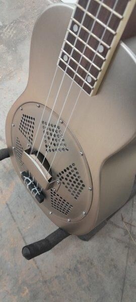 Ukelele tenor con resonador, tapa de metal y funda incluida.