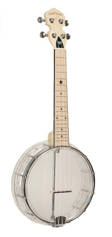 Banjolele concierto Little Gem transparente, con funda, color diamante.