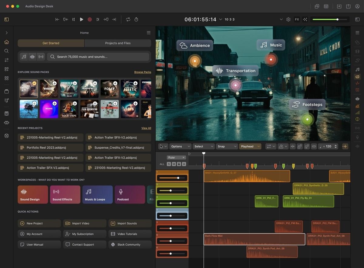 Audio Design Desk está revolucionando el sonido para video con un software de última generación impulsado por IA. ¿El secreto? Un enfoque preciso en solucionar flujos de trabajo obsoletos, para hacer que el audio para video sea divertido, rápido y más fácil de lograr. Se ha demostrado que ADD reduce el tiempo de producción de audio hasta en un 90%. Dirigido por el artista de grabación multiplatino y galardonado cineasta Gabriel Cowan, el equipo está formado por músicos de carrera, diseñadores de sonido y programadores. Con integraciones directas en todas las principales plataformas de edición de video, además de una creciente biblioteca de más de 75,000 sonidos libres de regalías, ADD se está convirtiendo rápidamente en la herramienta preferida para diseñadores de sonido que trabajan en proyectos de video.