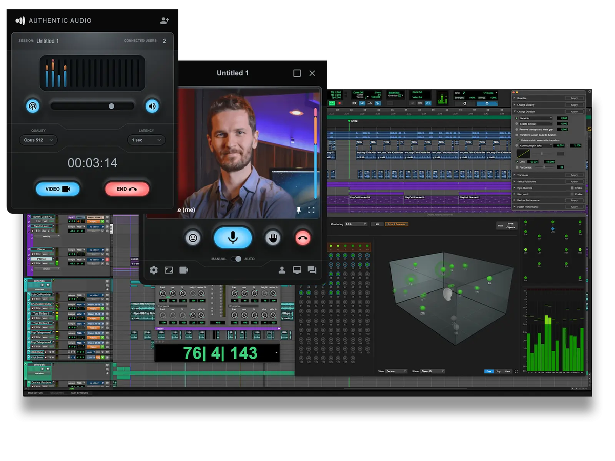 Transmite audio sin pérdida en tiempo real hasta una calidad de PCM de 32 bits y 96 kHz, para que puedas compartir tu audio de alta fidelidad mientras ocurre. Authentic Audio es una solución profesional para la colaboración musical remota, mezcla, masterización, tutoría y más.