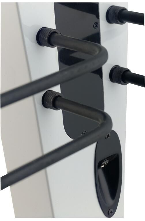 - Electrónica: Pastilla debajo del puente y ecualizador con control de volumen y graves, indicador de carga de batería, entrada mini jack 3,5 mm (1/8") para reproductor de CD o MP3, salida mini jack 3,5 mm (1/8") para auriculares y salida jack 6,35 mm (1/4")