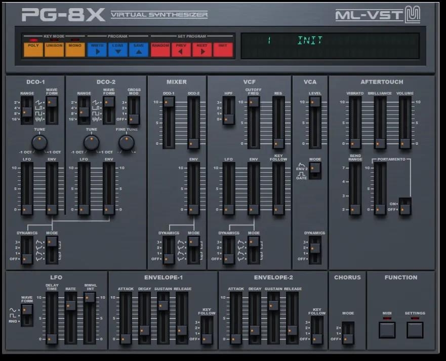El PG-8X es un sintetizador virtual analógico que ofrece un diseño clásico con un filtro 2-DCO - 24dB/oct.