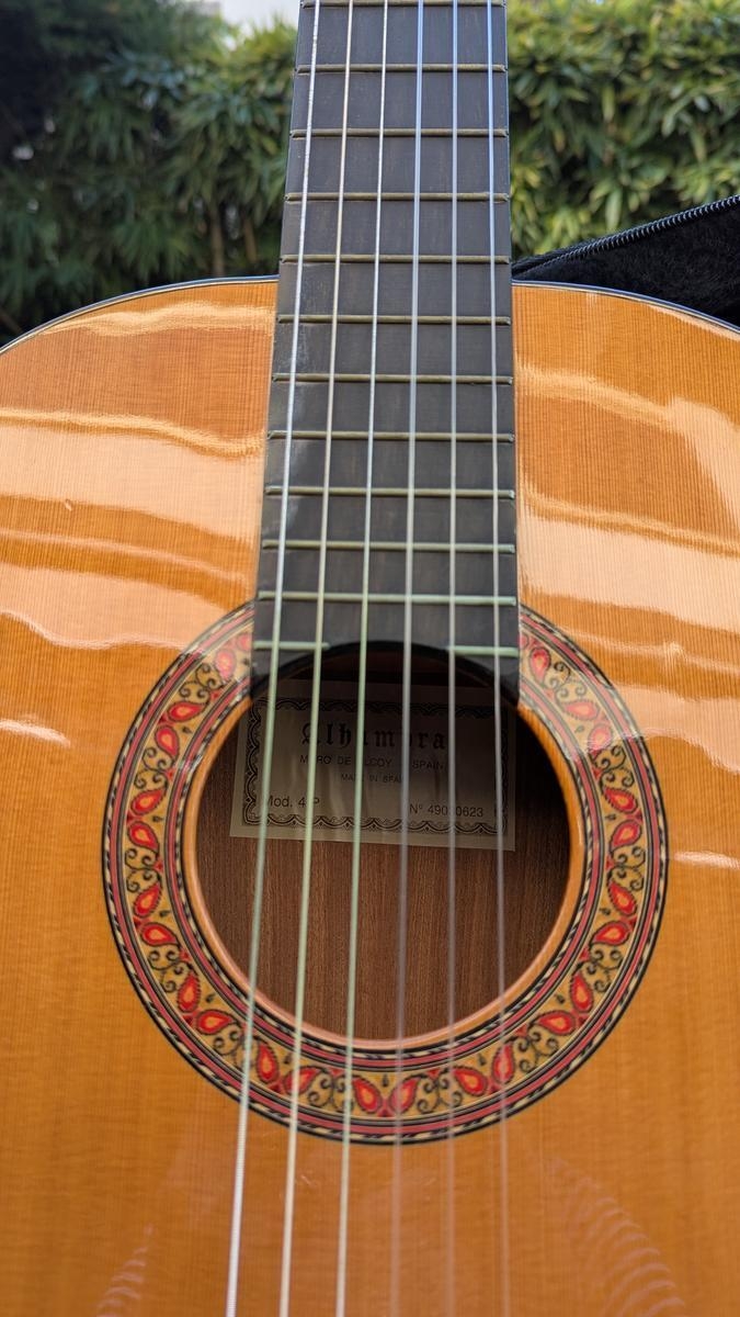 Guitare Alhambra 4P Guitare classique, à la sonorité Alhambra.... jamais servie, neuve mais achetée vers 1994 en franc : 3500 francs avec son coffre de rangement/transport. Corde E à régler.