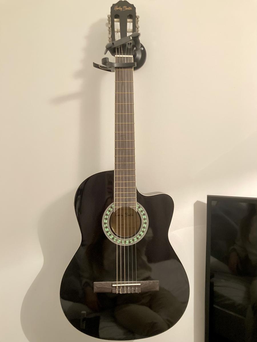 Guitare quasi neuve, presque jamais servie, de marque Harley Benton. Vendue avec :