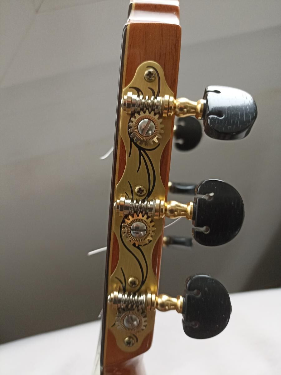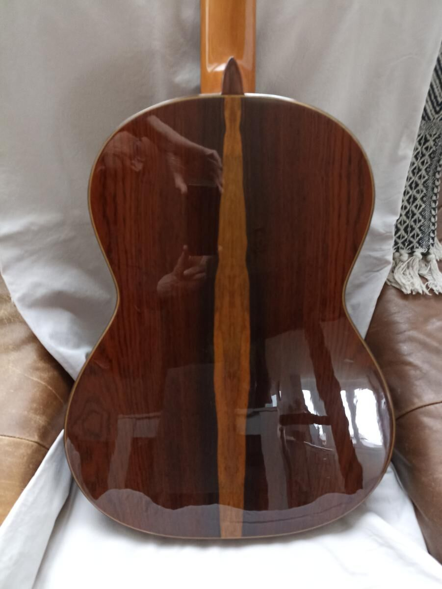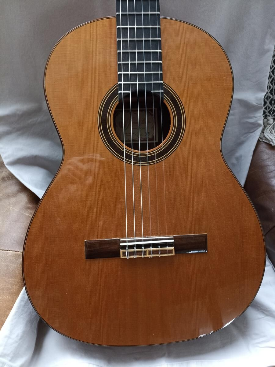 Guitare classique Prudencio Saez avec table massive en cèdre, éclisses et fond en cocobolo, manche en cèdre et touche en ébène, chevalet en palissandre, mécaniques spéciales premium.