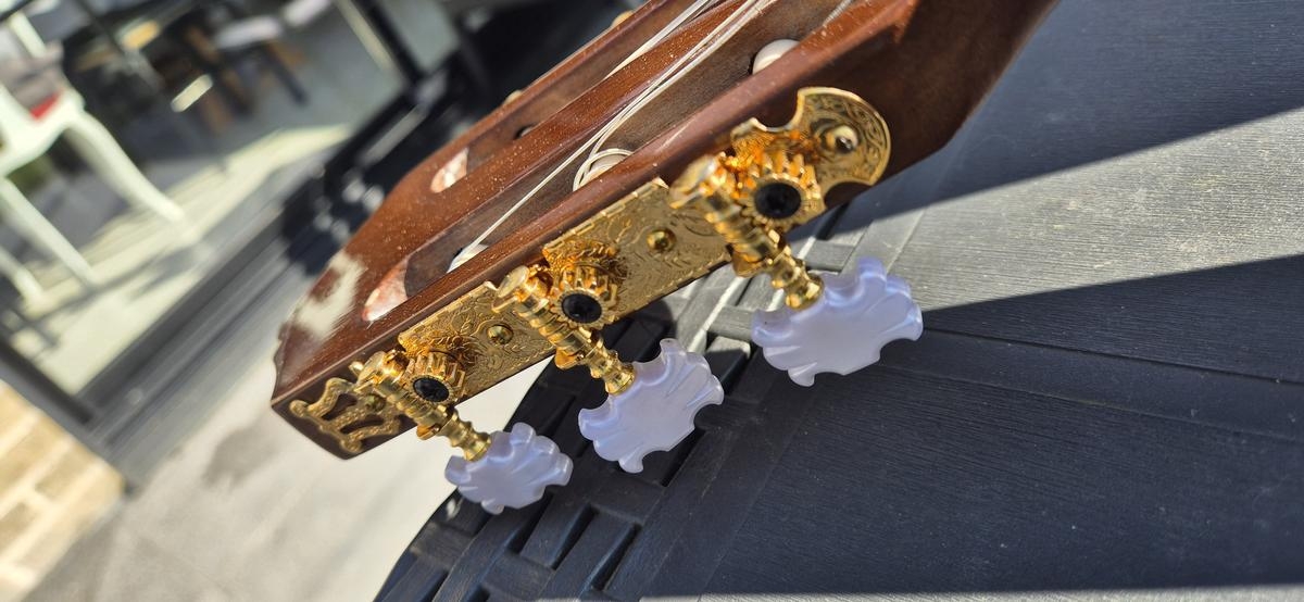 Ses mécaniques chromées offrent un accordage précis et stable, tandis que son chevalet en palissandre optimise la transmission des vibrations pour une résonance naturelle et expressive.