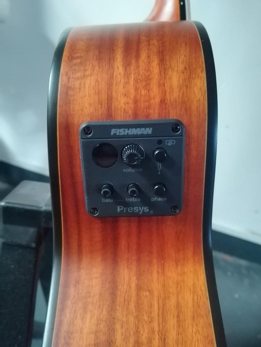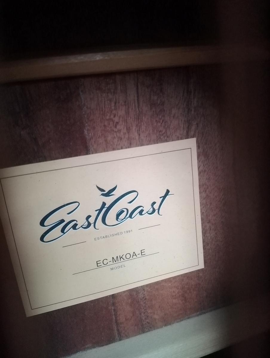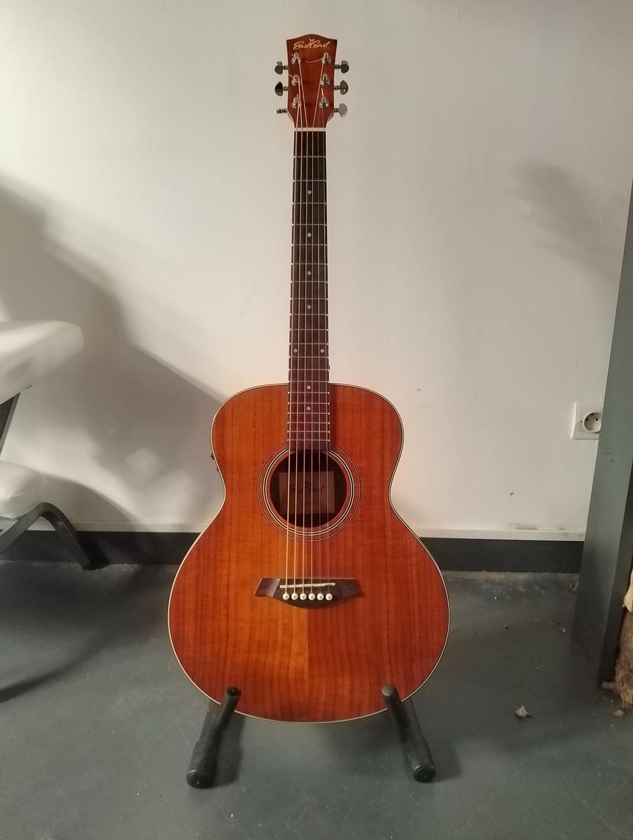 Guitare Électro acoustique de voyage EastCoast EC-MKOA-E. Excellent état! Très agréable à jouer et pratique à transporter. EastCoast EC-MKOA-E Guitare Électro-Acoustique de VoyageCaractéristiques Techniques :Type : Guitare électro-acoustique de voyageFormat : Compact (type parlour/travel guitar)Table : Koa laminéDos et éclisses : Koa laminéManche : Acajou avec profil confortableTouche : Palissandre (rosewood)Frettes : 20 frettesDiapason : 590 mm (23.2")Sillet de tête : 43 mmÉlectronique : Préampli avec accordeur intégréContrôles : Volume, tonalité et accordeurChevalet : PalissandreMécaniques : Chromées, bain d'huileFinition : Satinée naturelle