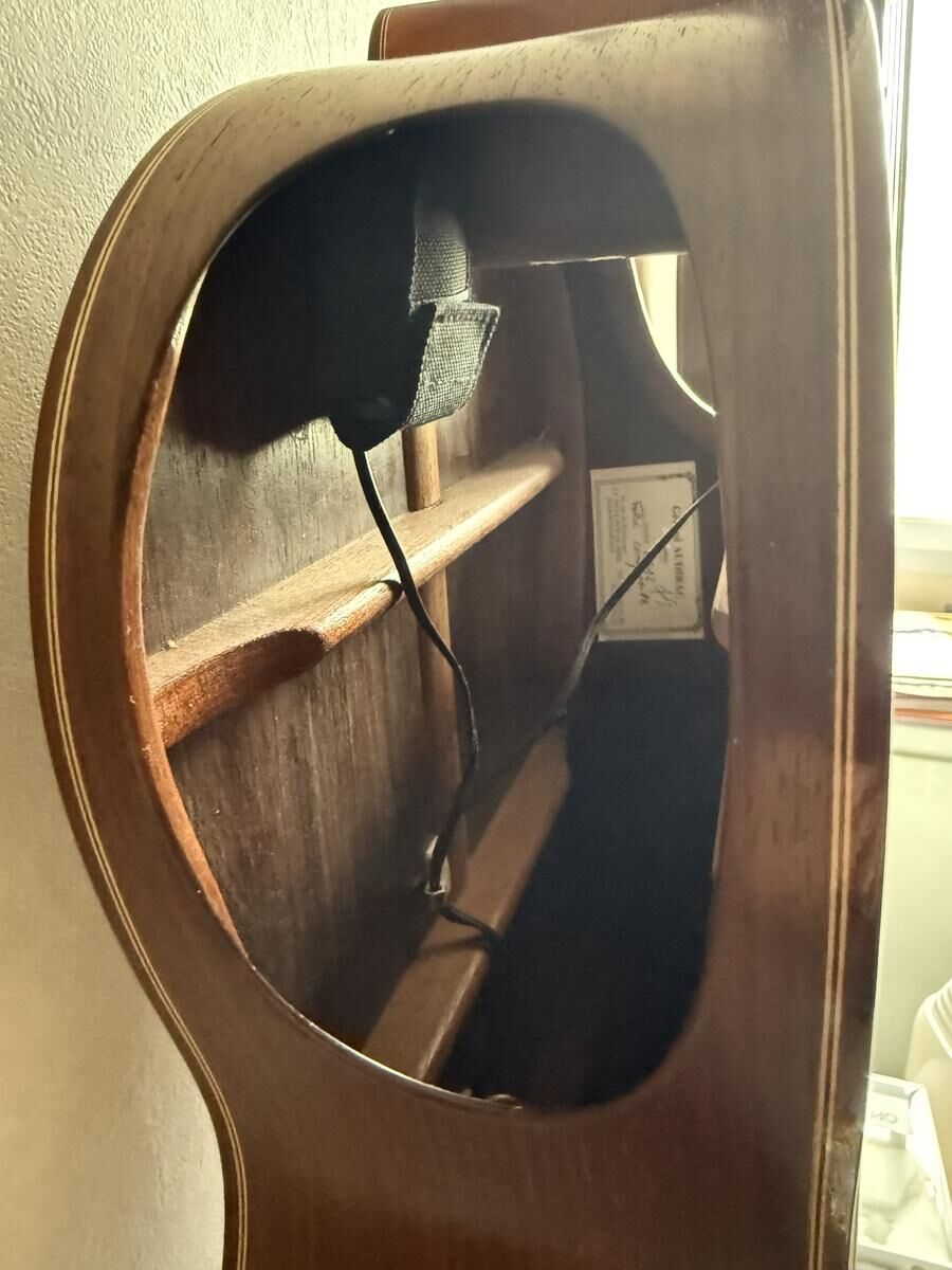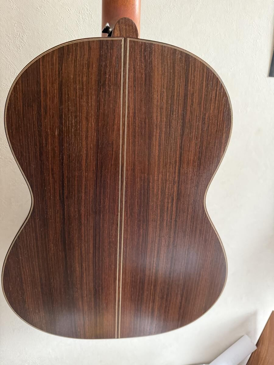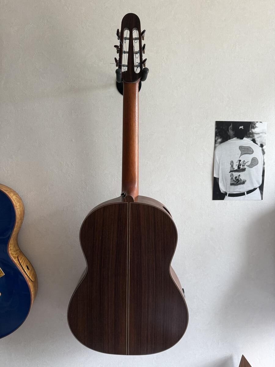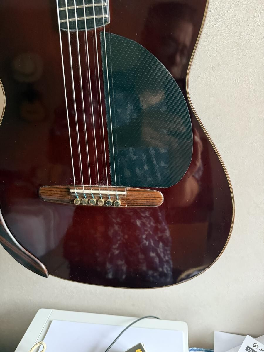 Guitare réalisé par le Luthier Gérard Audirac en 2012, totalement rénovée et embellie par le Luthier Pierre-Marc Martelli en 2022, le vernis, totalement refait, le manche à été retravaillé, la tête initialement plate à été modifiée ainsi que l'ensemble des mécaniques changée.