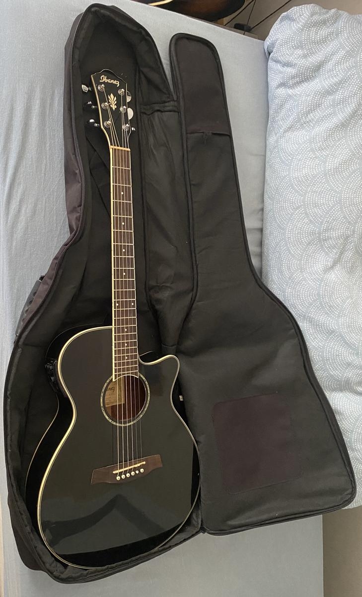 Bonjour vend ma guitare electro-acroustique ibanez vendu avec sa housse prix 250€ discutable
