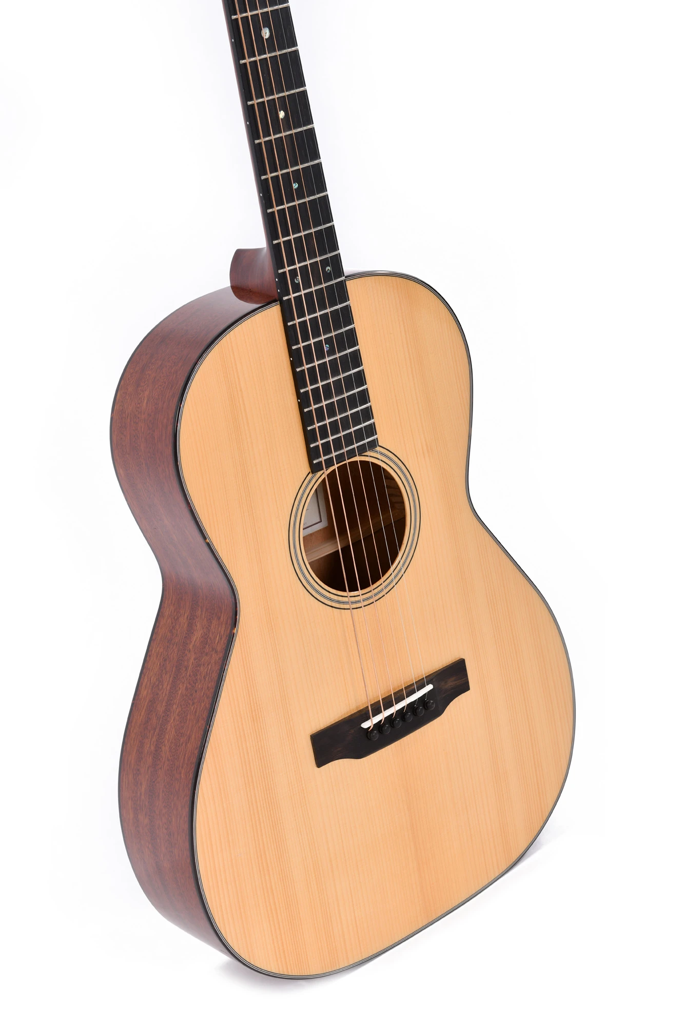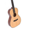 Ce modèle bénéficie d'une fabrication en bois massif, notamment la table en épicéa Adirondack, qui offre une sonorité chaleureuse et dynamique. La qualité des matériaux, comme l'os pour les sillets et l'ébène pour la touche, garantit une durabilité accrue et une meilleure stabilité du son. Les mécaniques Grover nickelées assurent une tenue d’accord optimale, tandis que la finition naturelle brillante met en valeur la beauté du bois.