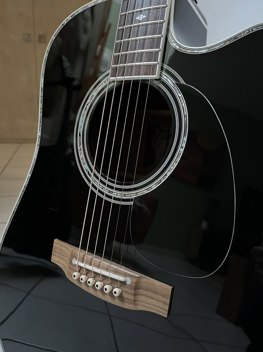 Guitare Signature Takamine de 2018 en excellent état comme neuve, aucun impact, aucune rayure.