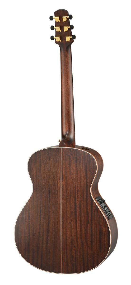 Le manche, renforcé en graphite, garantit une stabilité optimale même en conditions variées, et le barrage en double-X allégé contribue à une complexité tonale exceptionnelle tout en conservant légèreté et réactivité. La touche et le chevalet en palissandre apportent une touche esthétique élégante et une réponse précise. Avec ses 22 frettes, son sillet en os de 46 mm et ses mécaniques à bain d'huile noires, cette guitare offre un confort de jeu supérieur et une tuning fiable.