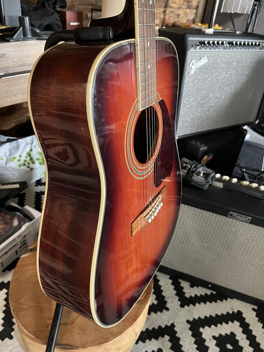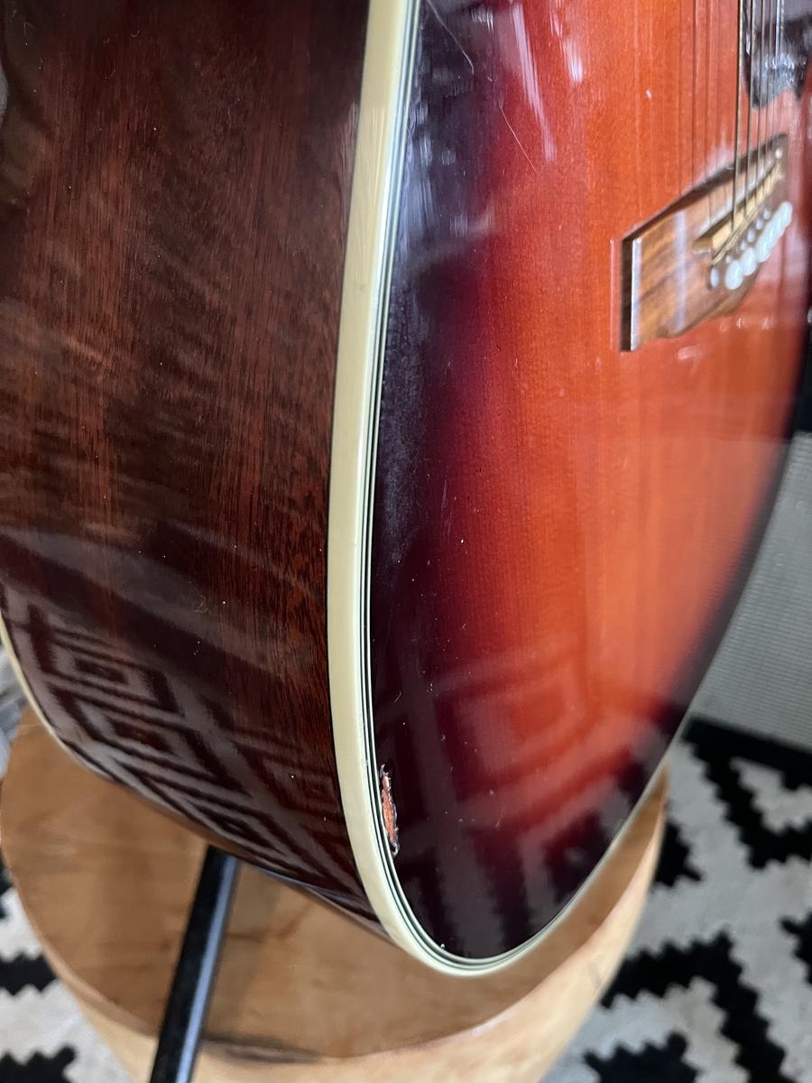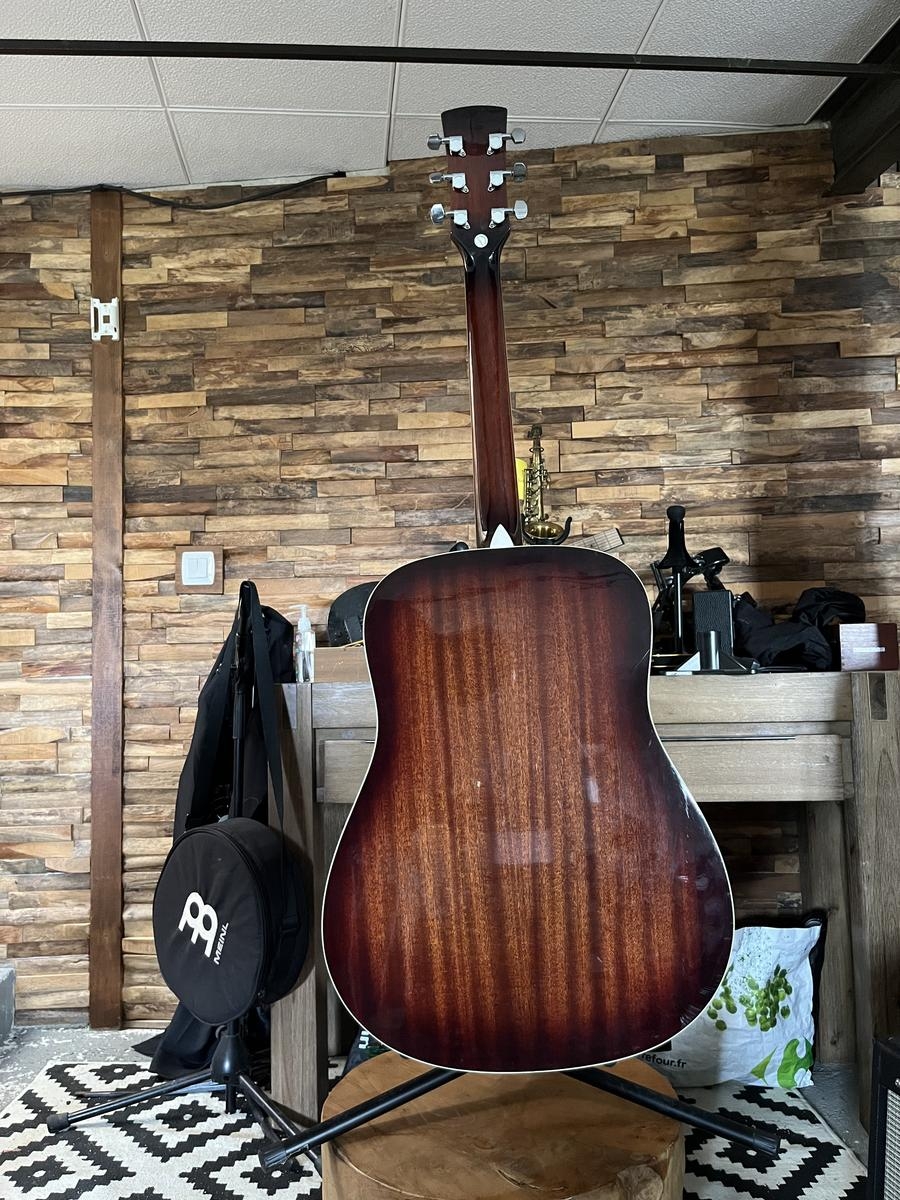 Cette guitare acoustique 6 cordes offre une sonorité riche et une esthétique classique grâce à son style dreadnought et sa finition sunburst.