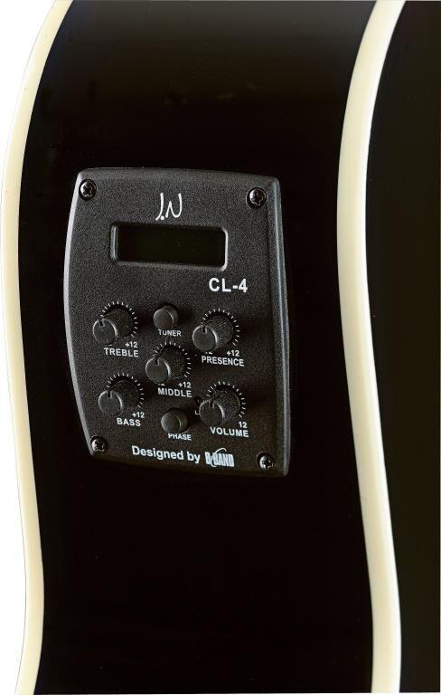 - Electronique: Micro sous sillet, égaliseur CL-4 avec contrôle de volume / basses / médiums / aigus / présence (+/- 12 dB), accordeur chromatique intégré, sélecteur de phase et témoin de charge de batterie, jack de sortie 6,35 mm (1/4") (développé par B-Band)