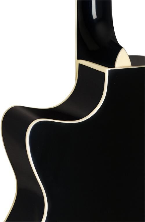 Guitare électro-acoustique auditorium noire avec table en épica massif, série Bessie