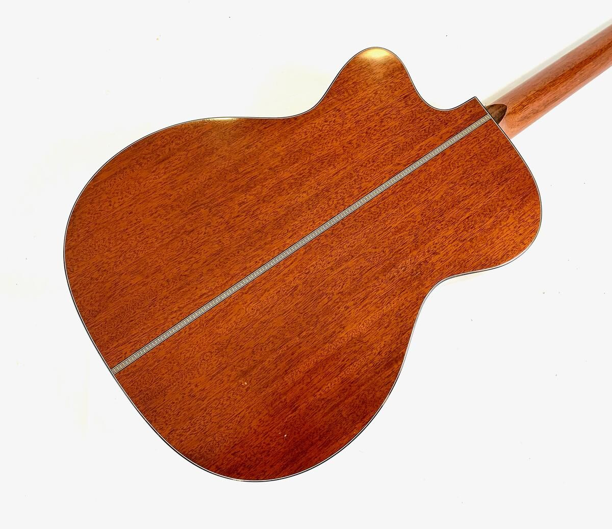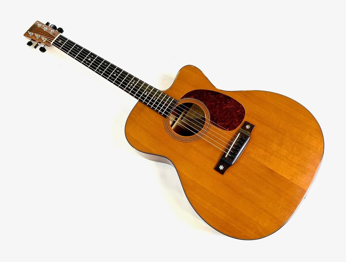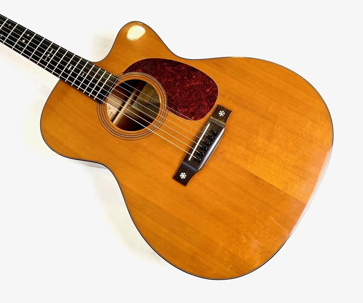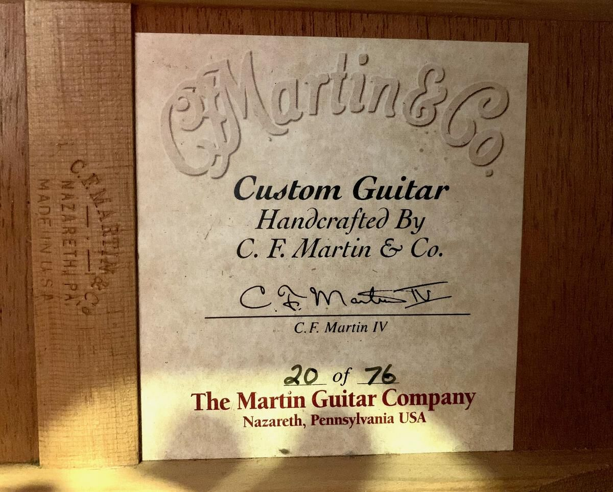 Cette édition limitée de 76 instruments, réalisée par le département Custom de chez Martin, présente une différence notable au niveau de la caisse qui est en acajou plutôt qu'en palissandre (ce bois est également utilisé pour le manche). Cela en fait une version extrêmement haut de gamme de la 000-18, légèrement modernisée grâce à l'ajout d'une découpe. La table est en épicéa européen, tandis que l'ébène est utilisé pour le chevalet, la touche et même une partie des mécaniques ! Des incrustations et des décorations en forme de flocon de neige ornent la touche et le chevalet. En ce qui concerne l'amplification, la guitare est équipée d'un Fishman Prefix. Elle est en excellent état et est vendue avec un étui générique.